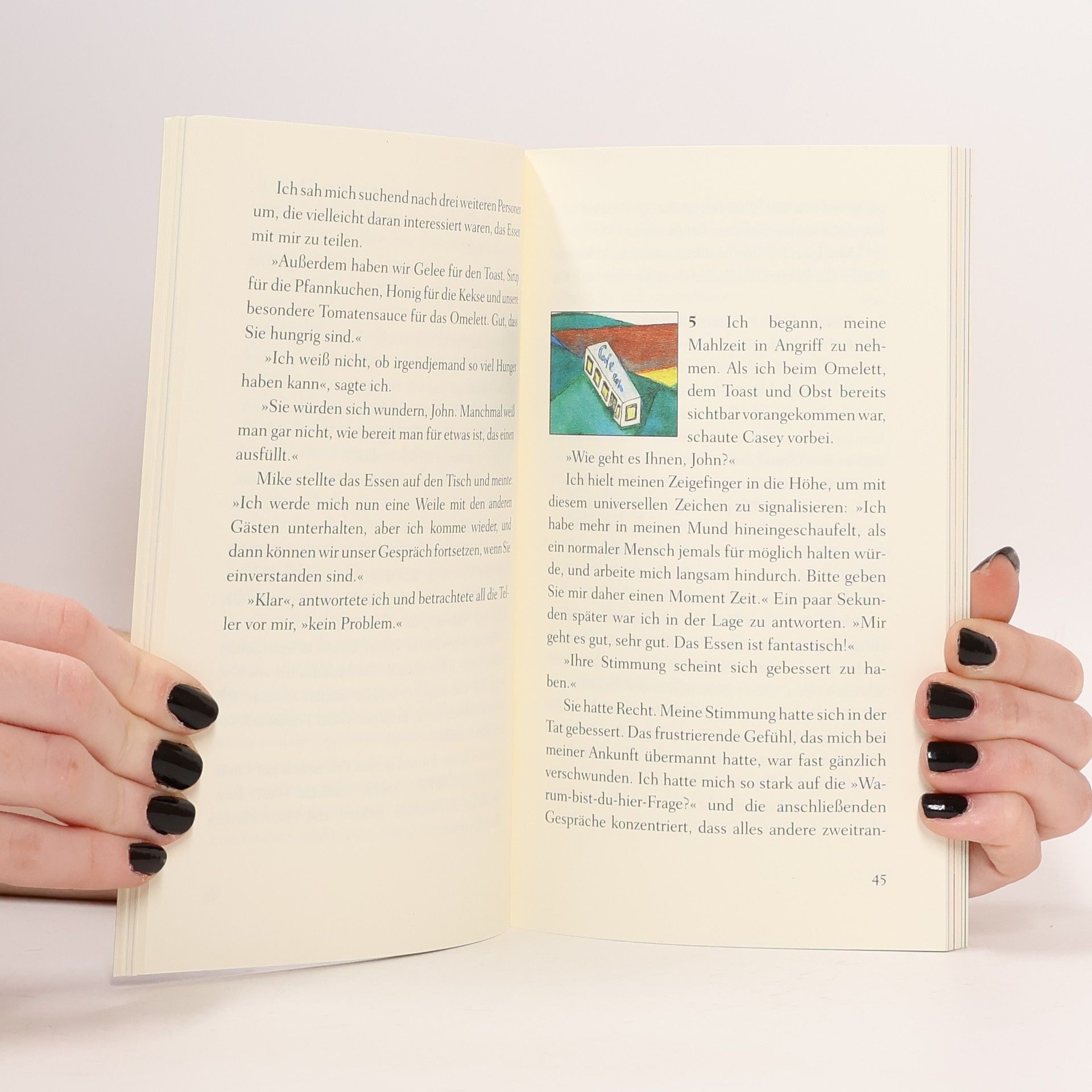 Humorvoll und anrührend Ein kleines Café mitten im Nirgendwo wird zum Wendepunkt im Leben von John, einem Werbemanager, der stets in Eile ist. Eigentlich will er nur kurz Rast machen, doch dann entdeckt er auf der Speisekarte neben dem Menü des Tages drei Fragen: »Warum bist du hier? Hast du Angst vor dem Tod? Führst du ein erfülltes Leben?« Wie seltsam – doch einmal neugierig geworden, will John mithilfe des Kochs, der Bedienung und eines Gastes dieses Geheimnis ergründen. Die Fragen nach dem Sinn des Lebens führen ihn gedanklich weit weg von seiner Vorstandsetage an die Meeresküste von Hawaii. Dabei verändert sich seine Einstellung zum Leben und zu seinen Beziehungen, und er erfährt, wie viel man von einer weisen grünen Meeresschildkröte lernen kann. So gerät diese Reise letztlich zu einer Reise zum eigenen Selbst. Ein ebenso lebendig geschriebenes, humorvolles wie anrührendes Buch. Durchgehend vierfarbig, mit Illustrationen von Root Leeb.