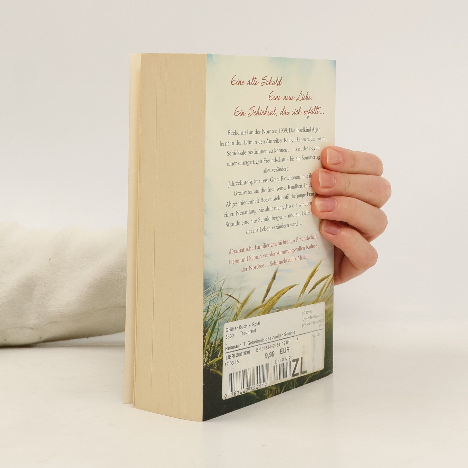 Eine alte Schuld. Eine neue Liebe. Ein Schicksal, das sich erfüllt … Der Roman erschien im Hardcover unter dem Titel „Das Geheimnis des Walfischknochens“. Beekensiel an der Nordsee, 1939. Der elfjährige Arjen lernt in den Dünen den Ausreißer Ruben kennen, der abenteuerliche Geschichten von einem Walfischknochen erzählt. Dieser soll Schicksale bestimmen können … Es ist der Beginn einer einzigartigen Freundschaft – bis ein Sommertag alles verändert. Jahrzehnte später reist Greta Rosenboom mit ihrem Großvater auf die Insel seiner Kindheit. Sie ahnt nicht, dass die windumtosten Strände Beekensiels eine alte Schuld bergen – und ein Geheimnis, das auch ihr Leben verändern wird …
