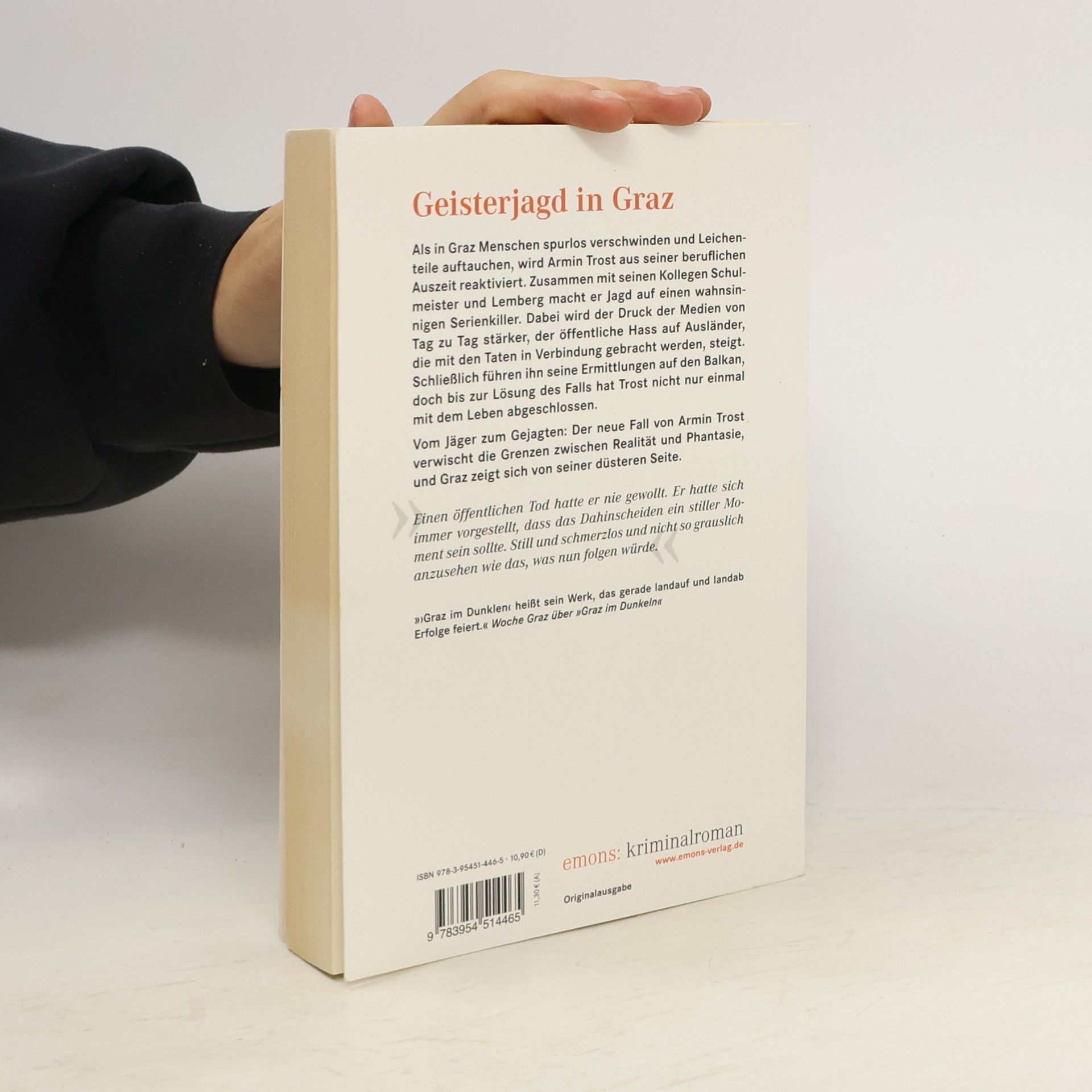 In Graz verschwinden nicht nur Menschen spurlos, es machen auch Geschichten von Geistern und Sagenfiguren die Runde. Armin Trost wird aus der Auszeit reaktiviert und soll die Ermittlungen leiten. Doch nicht nur die Jagd auf einen wahnsinnigen Serienkiller macht ihm zu schaffen, auch der Druck der Medien und der Hass innerhalb der Bevölkerung steigen. Weckt Trosts Geisterjagd etwa auch die alten Geister der Fremdenfeindlichkeit?