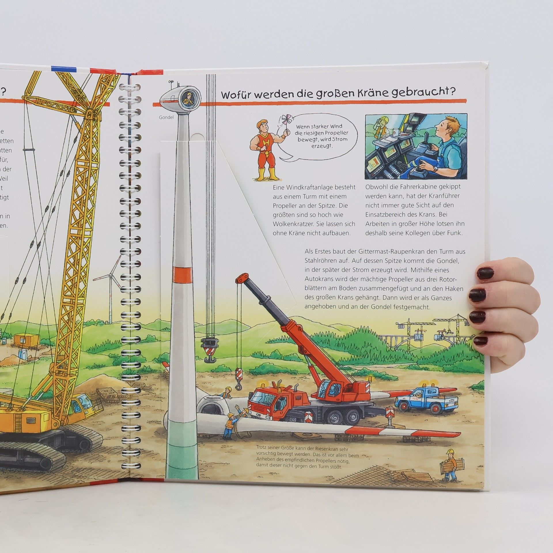 Riesige Fahrzeuge haben besonders starke Motoren und über ihre Grösse kann man nur staunen. Auf Doppelseiten können Giganten wie Schaufelradbagger, Grossmuldenkipper, Riesenkran, Containerschiff und der Airbus A380 entdeckt werden. Mit vielen Klappen.