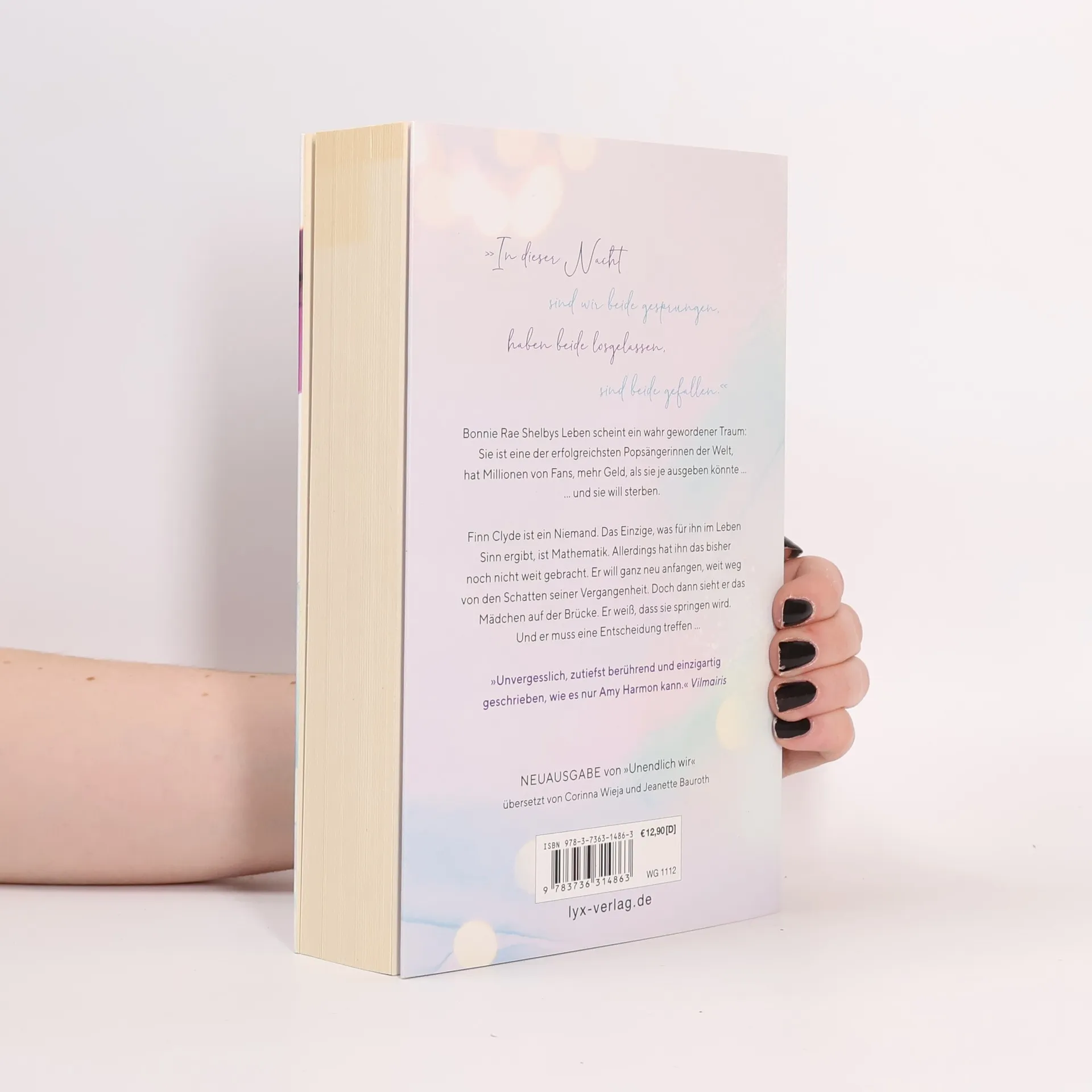 „In dieser Nacht sind wir beide gesprungen, haben beide losgelassen, sind beide gefallen.“ Bonnie Rae Shelbys Leben scheint ein wahr gewordener Traum: Sie ist eine der erfolgreichsten Popsängerinnen der Welt, hat Millionen von Fans, mehr Geld, als sie je ausgeben könnte ... und sie will sterben. Finn Clyde ist ein Niemand. Das Einzige, was für ihn im Leben Sinn ergibt, ist Mathematik. Allerdings hat ihn das bisher noch nicht weit gebracht. Er will ganz neu anfangen, weit weg von den Schatten seiner Vergangenheit. Doch dann sieht er das Mädchen auf der Brücke. Er weiß, dass sie springen wird. Und er muss eine Entscheidung treffen ... „Unvergesslich, zutiefst berührend und einzigartig geschrieben, wie es nur Amy Harmon kann.“ VILMAIRIS Neuausgabe von UNENDLICH WIR