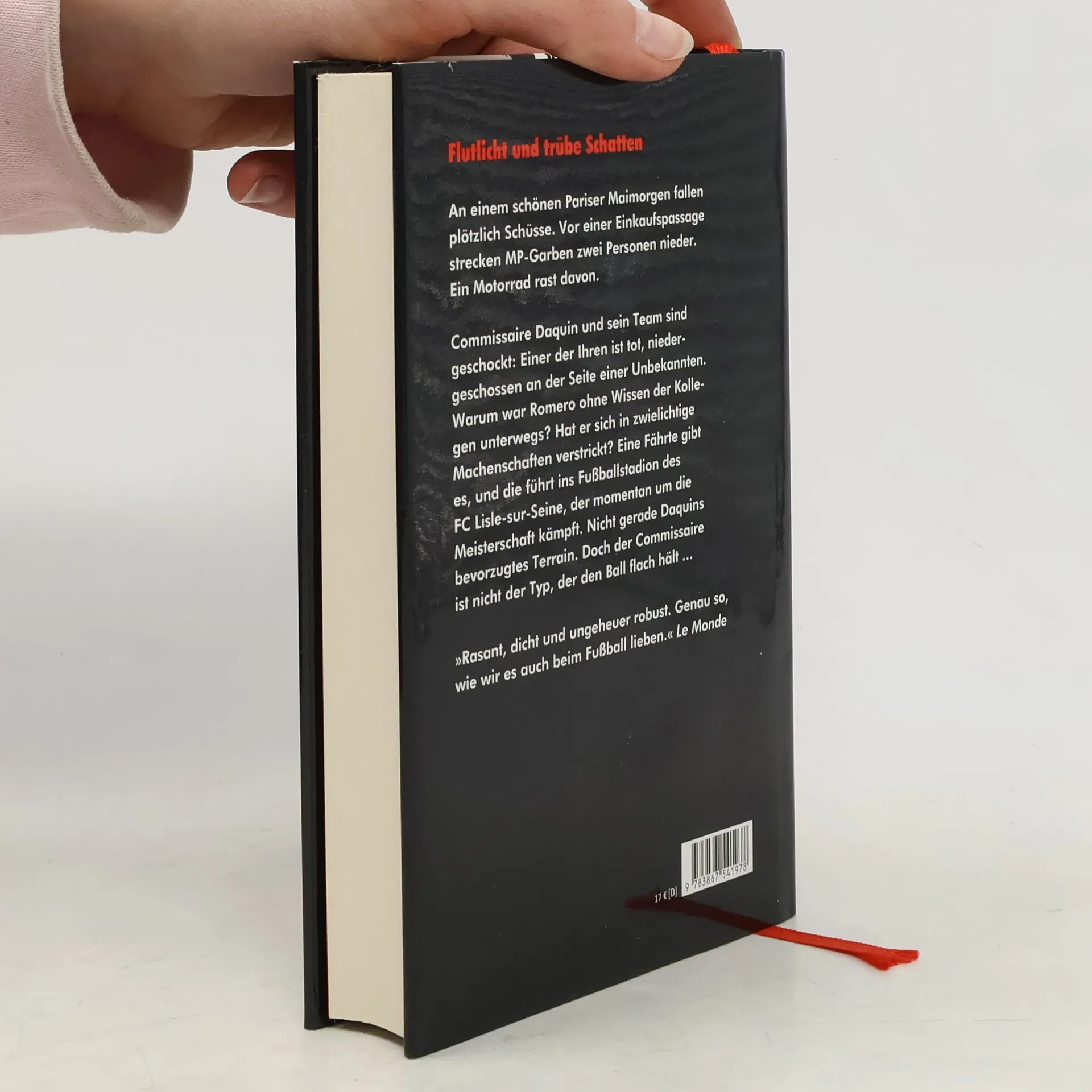 An einem schönen Pariser Maimorgen fallen plötzlich Schüsse. Vor einer Einkaufspassage strecken MP-Garben zwei Personen nieder. Ein Motorrad rast davon. Commissaire Daquin und sein Team sind geschockt: Einer der Ihren ist tot, niedergeschossen an der Seite einer Unbekannten. Warum war Romero ohne Wissen der Kollegen unterwegs? Hat er sich in zwielichtige Machenschaften verstrickt? Eine Fährte gibt es, und die führt ins Fußballstadion des FC Lisle-sur-Seine, der momentan um die Meisterschaft kämpft. Nicht gerade Daquins bevorzugtes Terrain. Doch der Commissaire ist nicht der Typ, der den Ball flach hält …