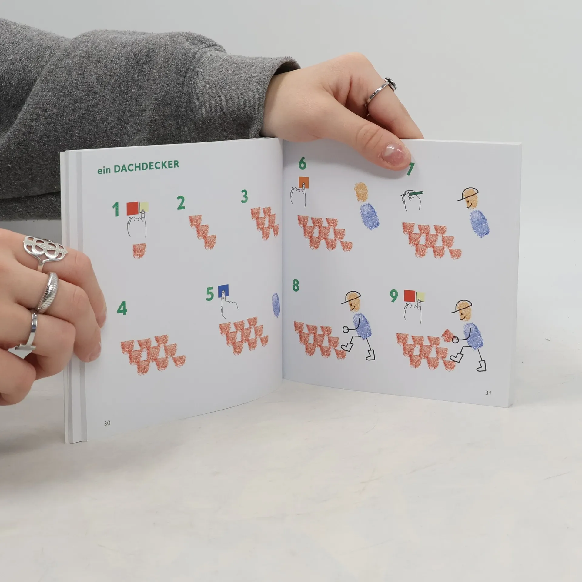 Der Stempelspaß für zu Hause und unterwegs Auf der Baustelle ist immer etwas los! Mit diesem Fingerstempel-Set für unterwegs können sich Jungs ab 5 Jahren die Zeit wunderbar und kreativ vertreiben. Ein Blatt Papier, bunte Stempelkissen, einen Stift und die eigenen Finger: Mehr braucht es nicht, um Bauarbeiter, Bagger und LKWs zum Leben zu erwecken. Im Buch wird Schritt für Schritt gezeigt, wie es geht. Und damit die kleinen Künstler gleich loslegen können, sind dem Anleitungsbuch vier Stempelfarben beigelegt. Wichtig: Diese Fingerstempelfarben wurden gemäß der europäischen Produktsicherheitsrichtlinien getestet und für unbedenklich eingestuft. Ein Effekt der immer höheren Sicherheitsanforderungen ist leider, dass sich die Farben schlechter abwaschen lassen. Mit etwas Speiseöl lassen sich die Farben (unserer Erfahrung nach) jedoch leichter von den Händen entfernen. Ausstattung: durchgehend farbig bebildert; 4 Fingerstempelfarben