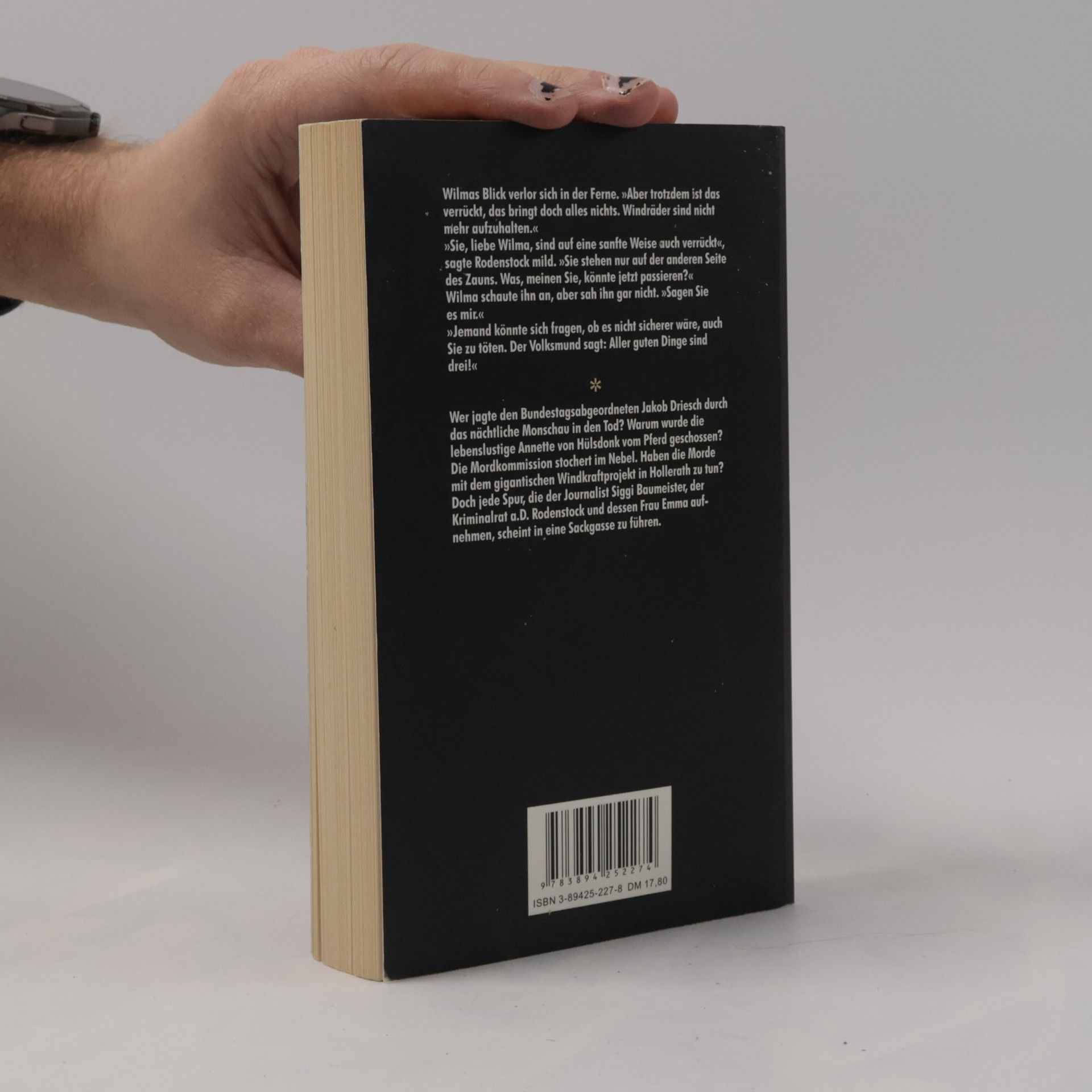 Der achte Band der Eifel-Serie. Wer jagte den Bundestagsabgeordneten Jakob Driesch durch das nächtliche Monschau in den Tod? Warum wurde die lebenslustige Annette von Hülsdonk vom Pferd geschossen? Die Mordkommission stochert im Nebel. Haben die Morde mit dem gigantischen Windkraftprojekt in Hollerath zu tun? Doch jede Spur, die der Journalist Siggi Baumeister, der Kriminalrat a. D. Rodenstock und dessen Frau Emma aufnehmen, scheint in eine Sackgasse zu führen.