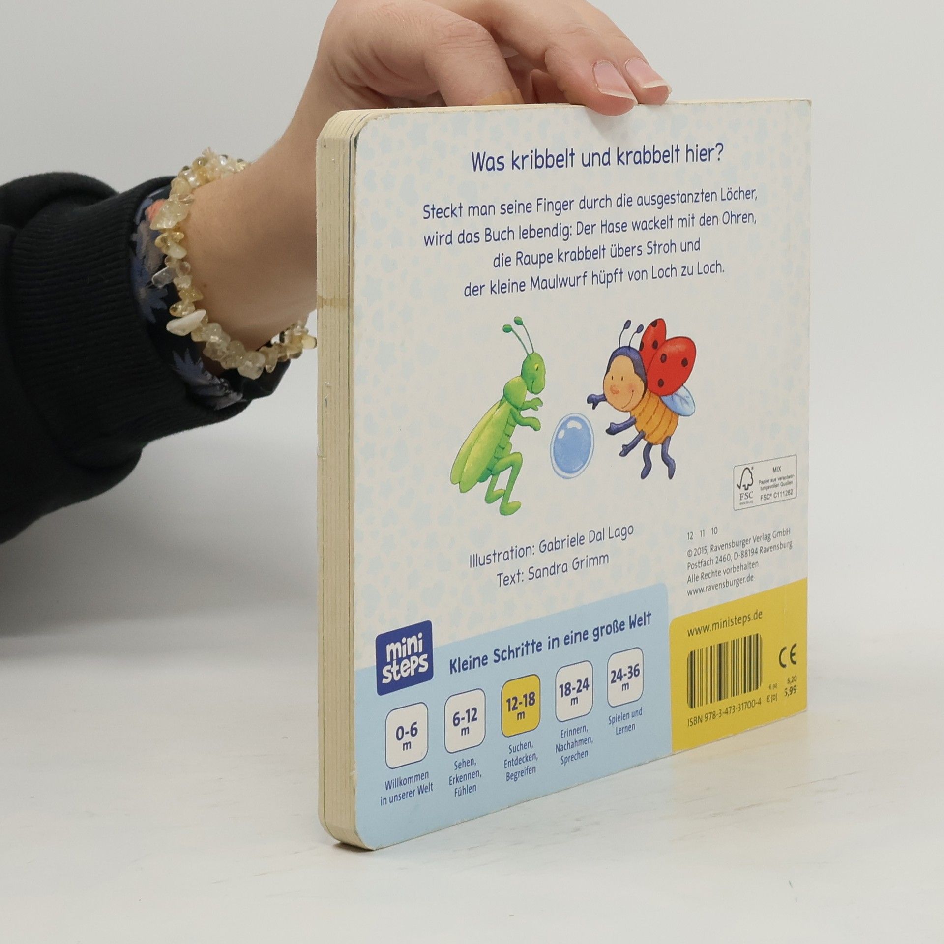 Steckt man seine Finger durch die ausgestanzten Löcher, wird das Buch lebendig: Der Hase wackelt mit den Ohren, die Raupe krabbelt übers Stroh und der kleine Maulwurf hüpft von Loch zu Loch. Vertrauen schenken. Das Leben entdecken. Babys und Kleinkinder wollen mit allen Sinnen die Welt entdecken. ministeps begleitet die Kleinen auf ihren ersten Schritten ins Leben. Die vielfältigen ministeps Bücher, Spiele und Spielsachen bieten für jedes Kind die optimalen Sinnesanreize. Sie fördern das Erkennen von Farben, Formen und Bildern, sie laden zum (Be-) Greifen ein und ermutigen zum Krabbeln und Sprechen. Alle ministeps Produkte sind von höchster Ravensburger Qualität. Und das spüren nicht nur die Kleinen. Auch die Großen haben die Sicherheit, den Kindern immer ideale Anreize zu bieten.