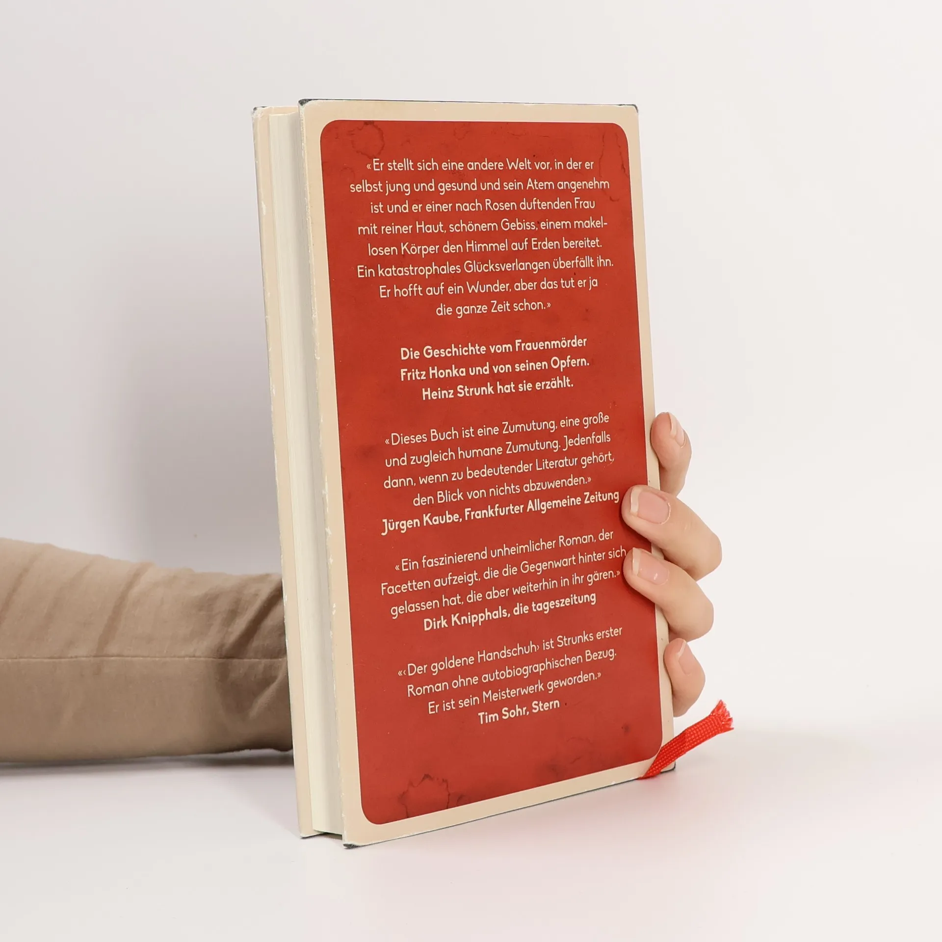 Fritz Honka, ein minderbemittelter Frauenmörder aus der Unterschicht, erlangte 1976 schaurige Berühmtheit. Seine Opfer nahm er aus der Hamburger Kneipe «Zum Goldenen Handschuh» mit. Strunks Roman taucht tief ein in die dunkle Welt von Kiez, Tresen, Abbruchquartier, deren Bewohnern das mitleidlose Leben alles Menschliche zu rauben droht. Er führt uns aber auch in die oberen Etagen der Gesellschaft, wo es nicht unbedingt menschlicher zugeht. Am Ende treffen sich Arm und Reich im «Handschuh»: Menschen allesamt, bis zur letzten Stunde geschlagen mit dem Wunsch nach Glück. Jetzt im Kino, verfilmt von Fatih Akin