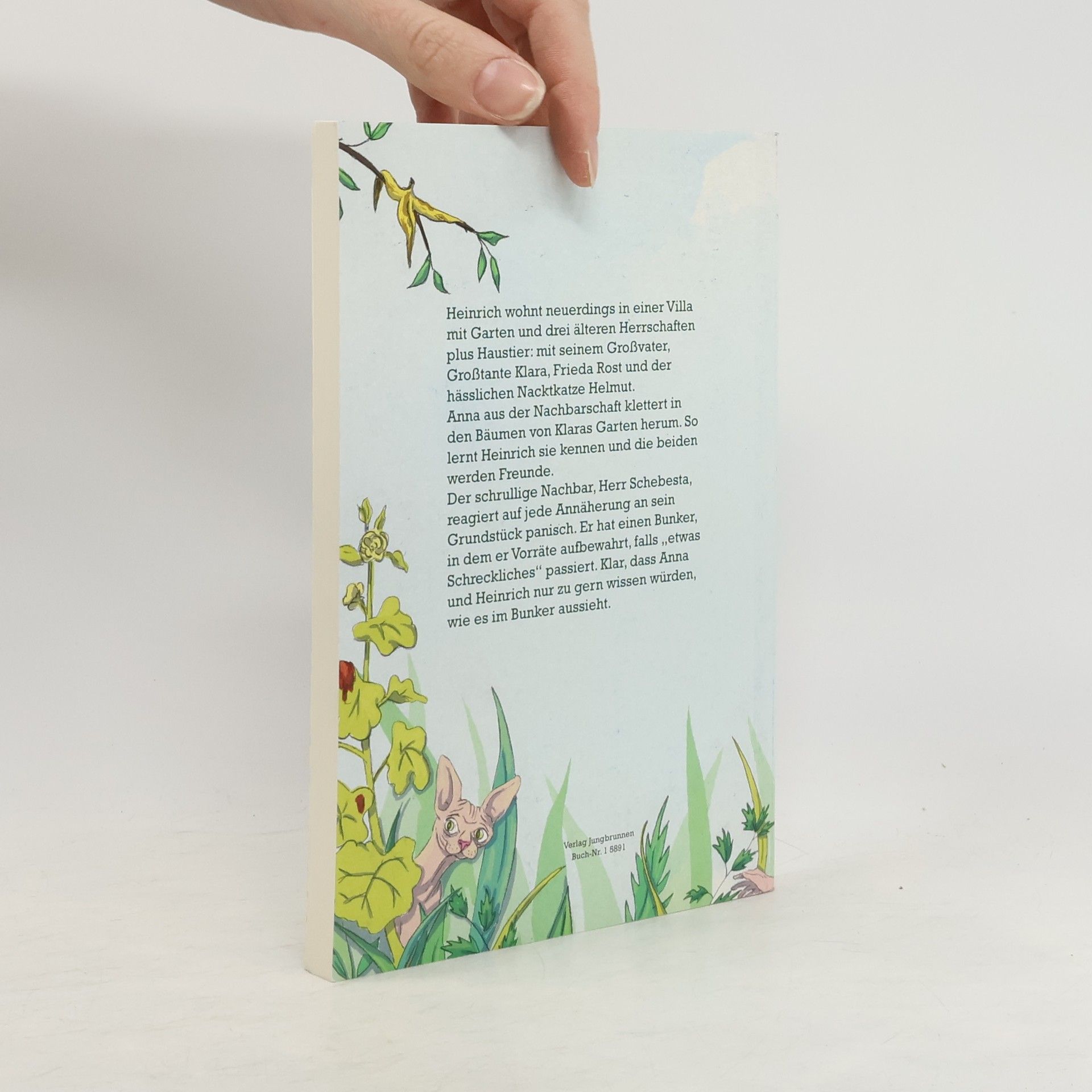 Heinrich wohnt neuerdings in einer Villa mit Garten und drei älteren Herrschaften plus Haustier: mit seinem Großvater, Großtante Klara, Frieda Rost und der hässlichen Nacktkatze Helmut. Anna aus der Nachbarschaft klettert in den Bäumen von Klaras Garten herum. So lernt Heinrich sie kennen und die beiden werden Freunde. Im Nachbarhaus wohnt Herr Schebesta, der auf jede Annäherung an sein Grundstück panisch reagiert und Heinrich über die Gartenmauer hinweg mit allen möglichen Dingen bombardiert. Er hat einen Bunker, in dem er Vorräte aufbewahrt, falls „etwas Schreckliches" passiert. Dieser Bunker übt eine magische Anziehungskraft auf Anna und Heinrich aus – nur zu gern würden sie wissen, wie es da drin aussieht. Sie schleichen sich ein, werden trotz großer Vorsicht erwischt und zum Glück von der versammelten Senioren-WG befreit. Und schließlich entspannt sich sogar die Beziehung zum Nachbarn.