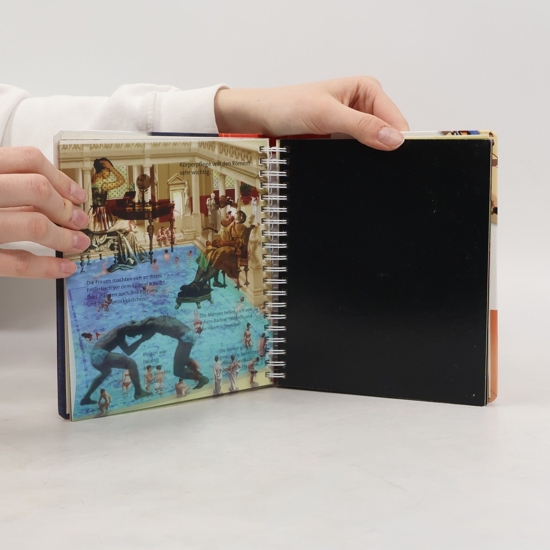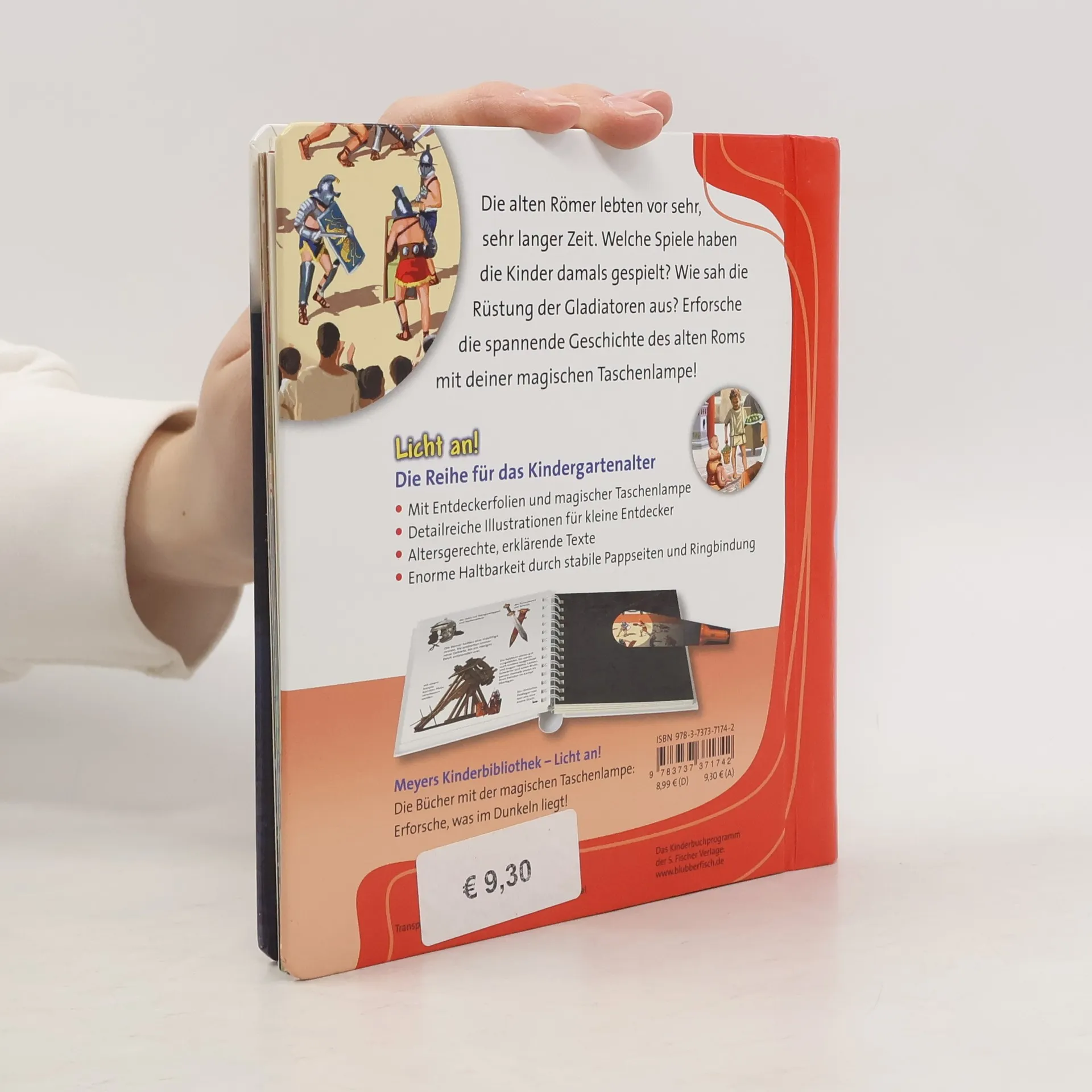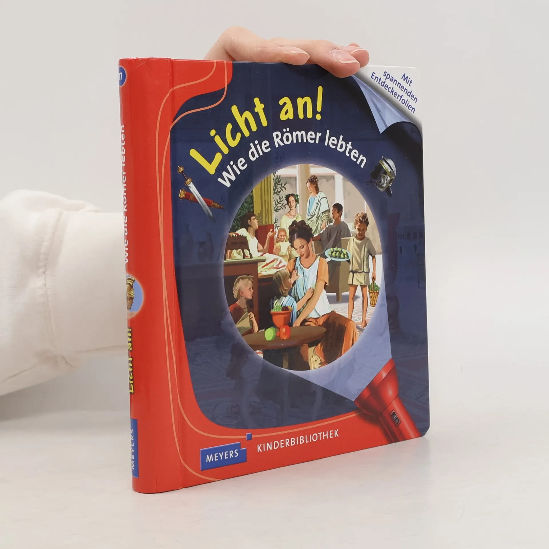 ***Meyers Kinderbiblitohek LICHT AN – die Reihe für das Kindergartenalter*** In der spannenden Sachbilderbuchreihe »Meyers Kinderbibliothek – Licht an!« entdecken Kinder, was normalerweise im Dunkeln liegt. Mit der beiliegenden »Taschenlampe« aus Papier können die kleinen Forscher unter den Entdeckerfolien gezielt bunte Szenen beleuchten und in verborgene Welten eintauchen. Ein außergewöhnlicher Einblick in den Alltag im alten Rom. Wohin gingen die Römer, um sich zu waschen? Wo konnte man Gladiatoren und wilde Tiger kämpfen sehen? Und was ist ein Aquädukt? Die magische Taschenlampe beleuchtet bunt gefüllte Marktstände, prachtvolle Mosaikbilder und die eindrucksvollen Masken der Schauspieler im Amphitheater. + Mit Entdeckerfolien und magischer Taschenlampe + Detailreiche Illustrationen für kleine Entdecker + Altersgerechte, erklärende Texte + Enorme Haltbarkeit durch stabile Pappseiten und Ringbindung Bei Antolin gelistet