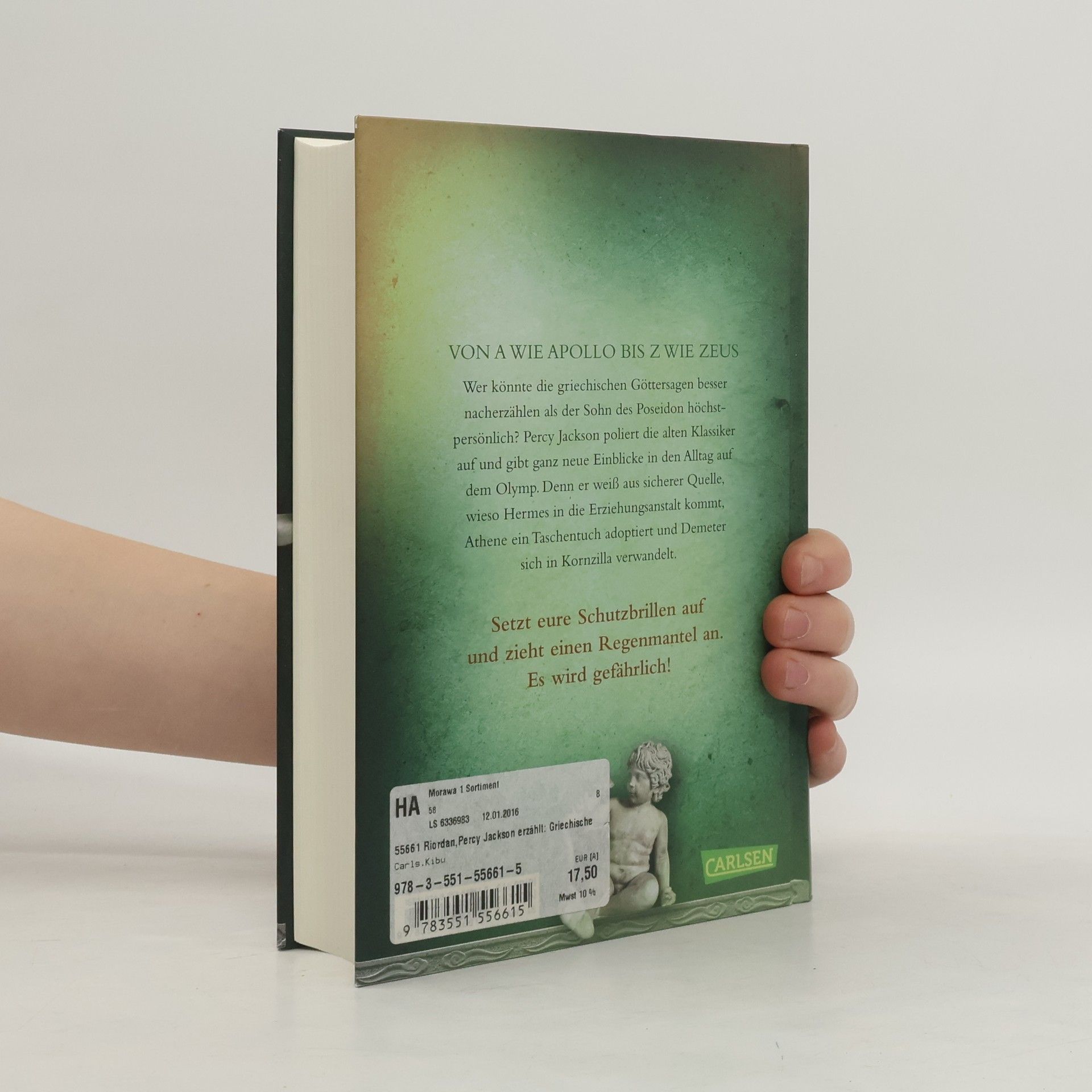 Kurzweilig, informativ, witzig: Alles, was man über die griechische Götterwelt wissen muss Wer könnte die griechischen Göttersagen besser nacherzählen als der Sohn des Poseidon höchstpersönlich? Percy Jackson haucht den alten Klassikern turbulentes Leben ein und gibt ganz neue Einblicke in den Alltag auf dem Olymp. Mit einem Augenzwinkern berichtet er unter anderem davon, wie Athene ein Taschentuch adoptiert oder Persephone ihren Stalker heiratet. Ein urkomisches Leseerlebnis für jeden, der Spaß an griechischer Mythologie hat – und für alle anderen garantiert auch! Von Apollo bis Zeus: Die bekanntesten Göttersagen der Antike in einem Buch Klassische Stoffe nacherzählt mit göttlichem Humor – auch perfekt als Schullektüre geeignet Die ideale Ergänzung zur Percy-Jackson-Buchreihe Für Fans der griechischen Mythologie Geeignet für alle Altersklassen ***Antikes Drama trifft auf zeitgenössische Jugendsprache – so macht Wissensvermittlung Spaß!***