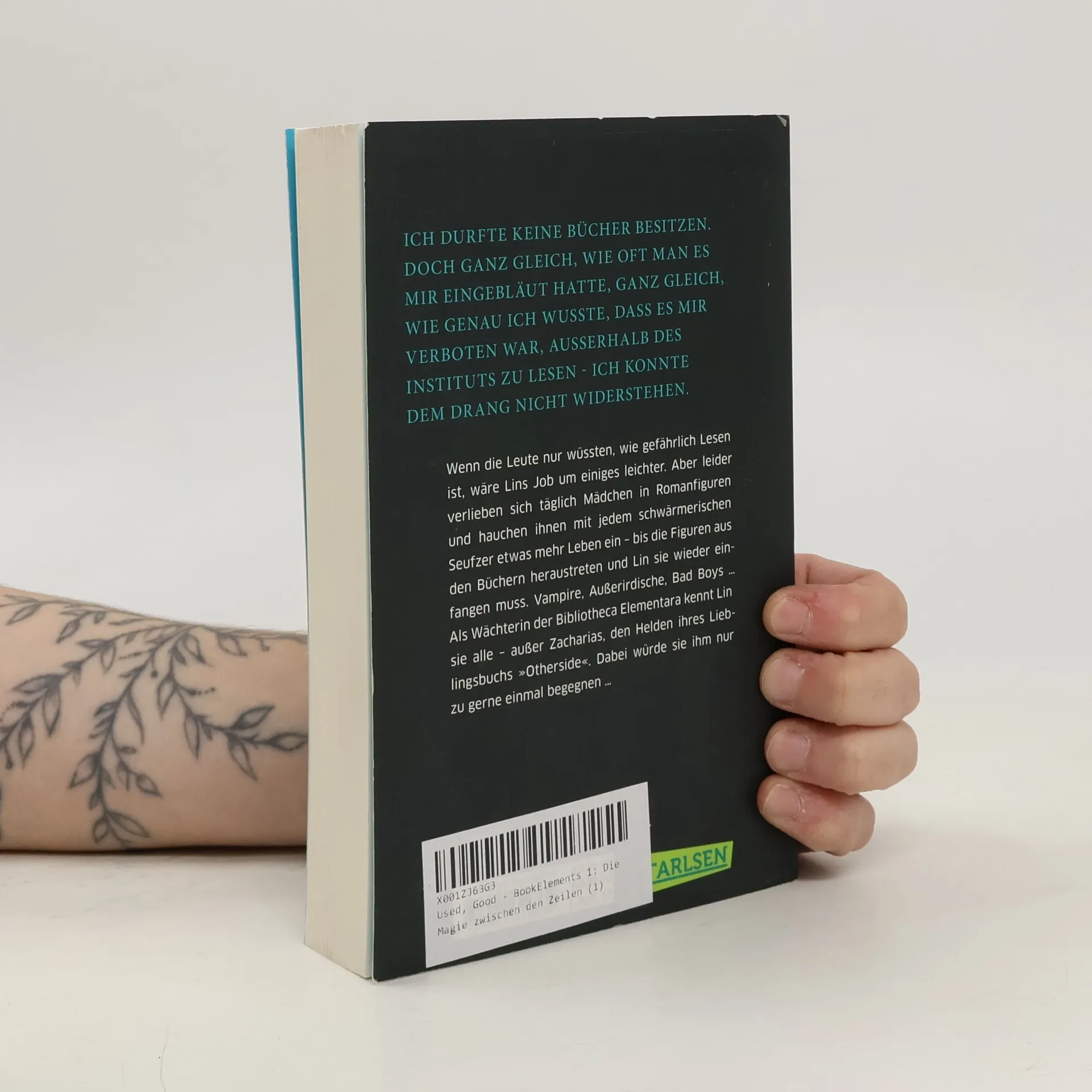 Wenn die Leute nur wüssten, wie gefährlich Lesen ist, wäre Lins Job um einiges leichter. Aber leider verlieben sich täglich Mädchen in Romanfiguren und hauchen ihnen mit jedem schwärmerischen Seufzer etwas mehr Leben ein – bis die Figuren aus den Büchern heraustreten und Lin sie wieder einfangen muss. Vampire, Außerirdische, Bad Boys … Als Wächterin der Bibliotheca Elementara kennt Lin sie alle – außer Zacharias, den Helden ihres Lieblingsbuchs »Otherside«. Dabei würde sie ihm nur zu gerne einmal begegnen… //Alle Bände der fantastischen Bestseller-Reihe: -- BookElements 1: Die Magie zwischen den Zeilen -- BookElements 2: Die Welt hinter den Buchstaben -- BookElements 3: Das Geheimnis unter der Tinte -- BookElements: Alle drei Bände in einer E-Box// Die BookElements-Reihe ist abgeschlossen.