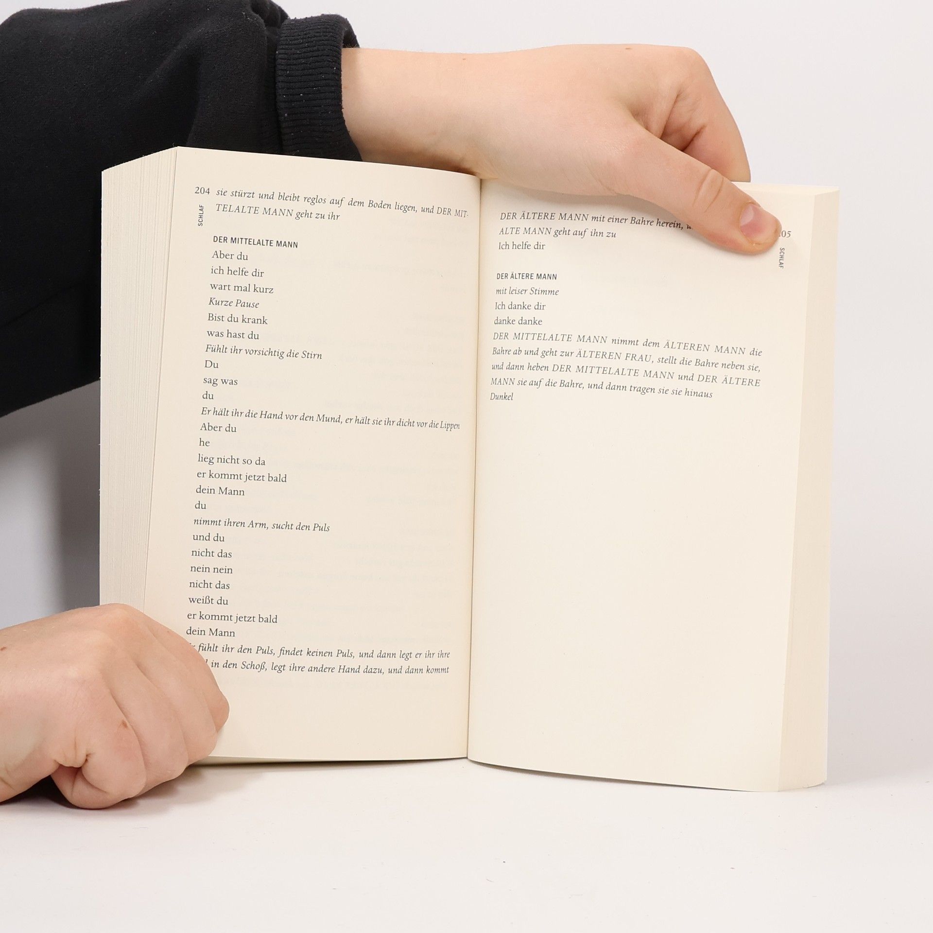 Zart und unerbittlich zugleich kreisen Jon Fosses Stücke um die Unausweichlichkeit des Todes: Eine Familie muss mit dem Selbstmord der einzigen Tochter fertigwerden (Todesvariationen). Wie Wiedergänger begegnet sich ein hoffnungsfrohes junges Paar in einer Wohnung selbst im hohen Alter (Schlaf). Auf einem Boot versucht ein Mann seinen besten Freund in der Gegenwart zu halten, obwohl der sich von der Welt längst verabschiedet hat (Ich bin der Wind). «Magisch, berührend, manchmal auch von leiser Komik» (Frankfurter Allgemeine Zeitung), setzt Jon Fosse seine Figuren tiefgreifenden Lebenskrisen aus und schreibt lange nachhallende, poetisch verdichtete Meditationen über das Menschsein, die Angst und Lust des spurlosen Verschwindens. «Bei Jon Fosse wird das Unsagbare beschworen.» (Die Welt) «Eine so absichtsvolle Zuspitzung aufs Existenzielle hat es lange nicht mehr gegeben … Ein finsterer Traum aus der Tiefe elementarer Lebensangst.» (Frankfurter Rundschau)