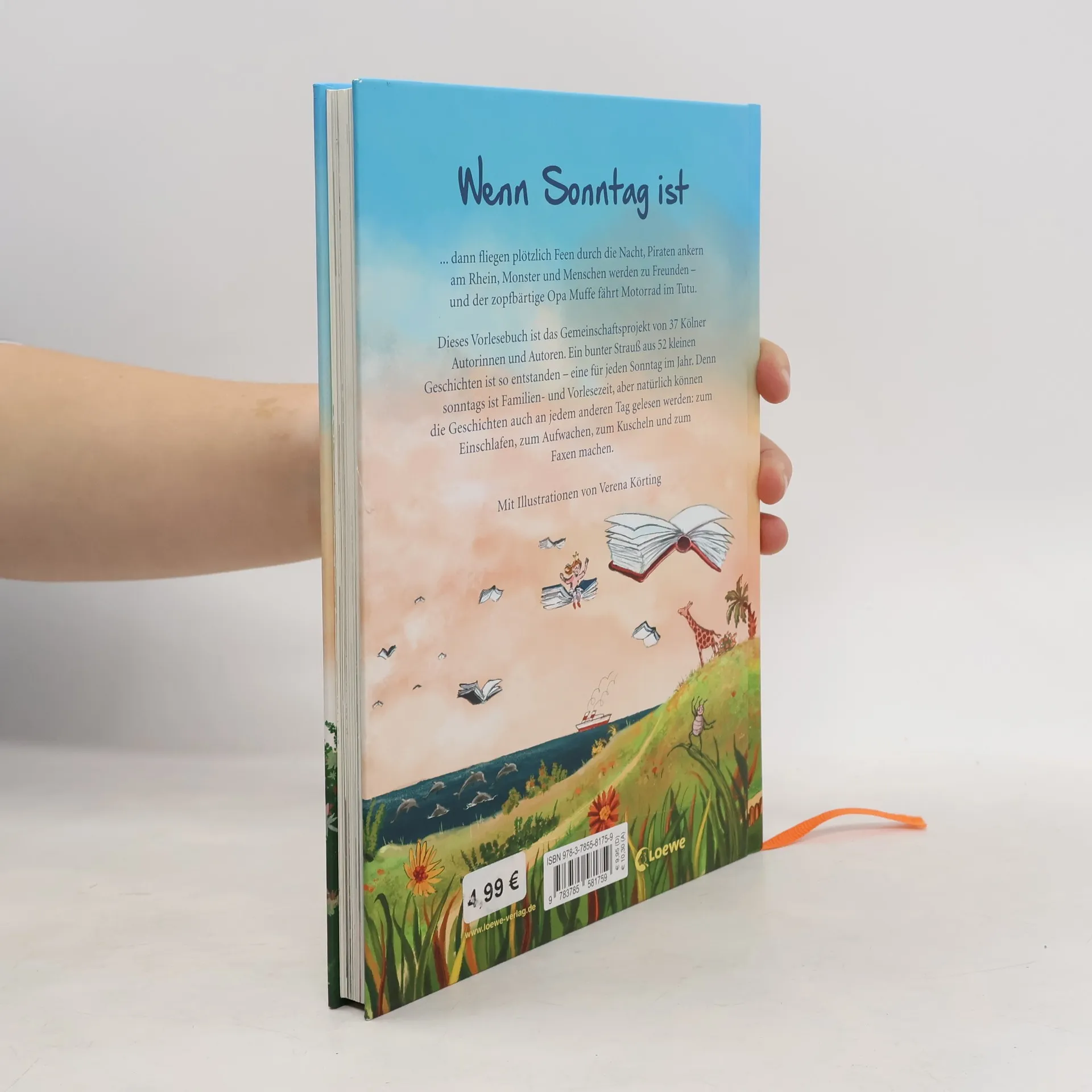 Wenn Sonntag ist ... ... dann fliegen plötzlich Feen durch die Nacht, Piraten ankern am Rhein, Monster und Menschen werden zu Freunden – und der zopfbärtige Opa Muffe fährt Motorrad im Tutu. Dieses Vorlesebuch ist das Gemeinschaftsprojekt von 37 Kölner Autorinnen und Autoren , an dem sowohl bekannte Namen wie auch Jungautoren beteiligt sind. Ein bunter Strauß aus 52 kleinen Geschichten ist so entstanden – eine für jeden Sonntag im Jahr. Denn sonntags ist Familien - und Vorlesezeit , aber natürlich können die Geschichten auch an jedem anderen Tag gelesen werden: zum Einschlafen , zum Aufwachen, zum Kuscheln und zum Faxen machen. Stimmungsvolle Illustrationen von Verena Körting geben in der Vorlesesituation besonderen Anlass zum gemeinsamen Erleben und Besprechen der vielen komischen und fantasievollen Abenteuer , die sich in dieser Gemeinschaftsarbeit versammelt haben.