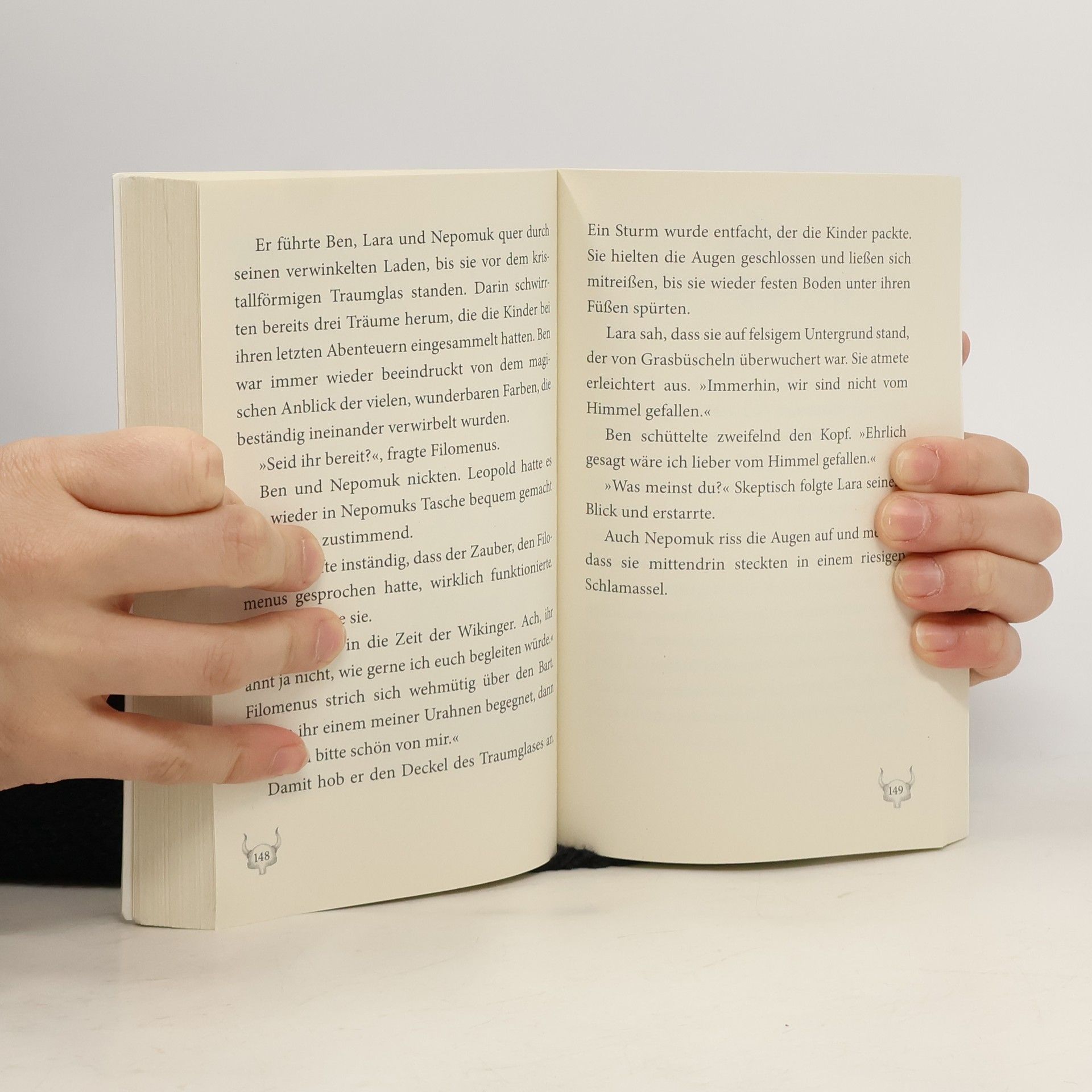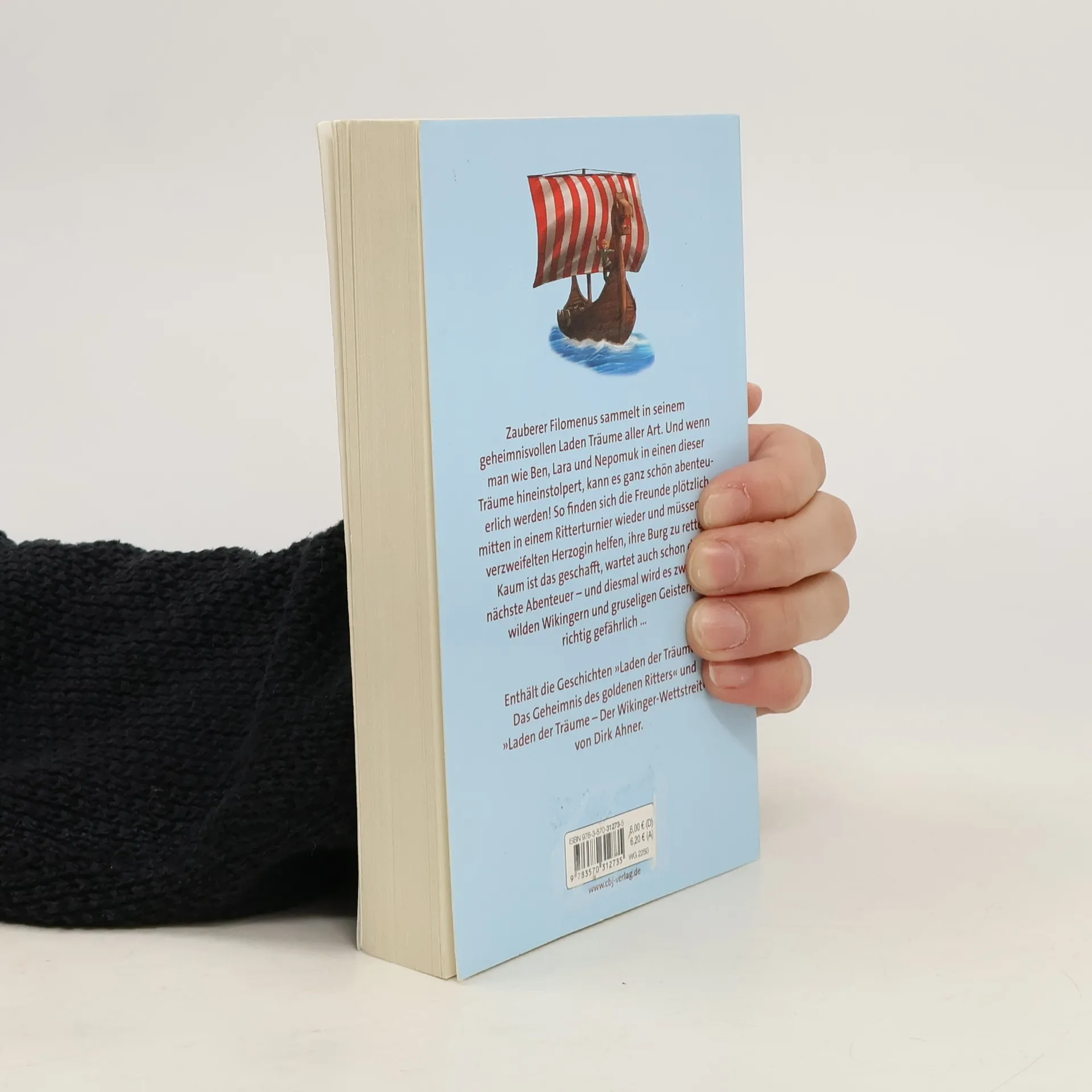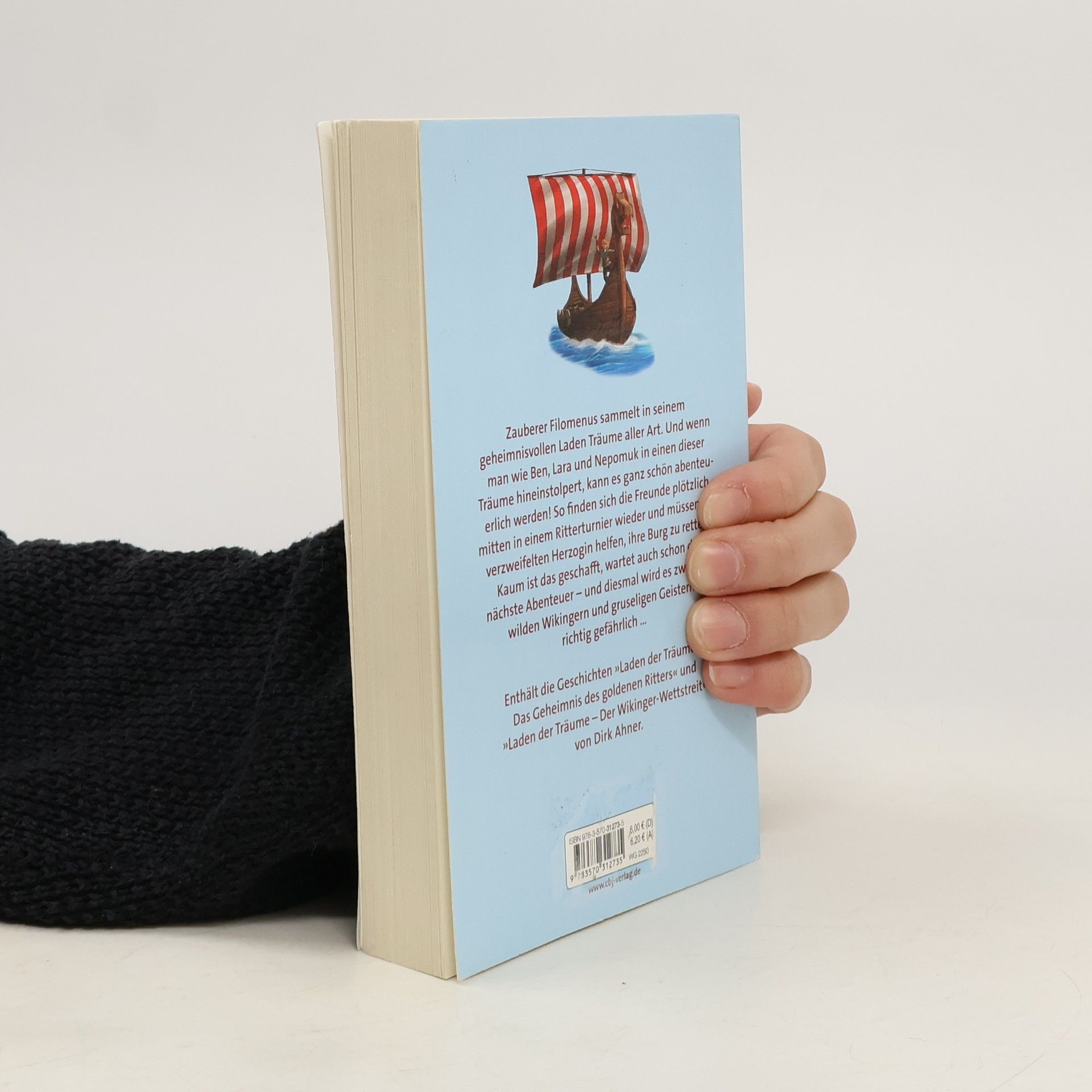 Kopfüber ins Abenteuer! Zauberer Filomenus sammelt in seinem geheimnisvollen Laden Träume aller Art. Und wenn man wie Ben, Lara und Nepomuk in einen dieser Träume hineinstolpert, kann es ganz schön abenteuerlich werden! So finden sich die Freunde plötzlich mitten in einem Ritterturnier wieder und müssen der verzweifelten Herzogin helfen, ihre Burg zu retten. Kaum ist das geschafft, wartet auch schon das nächste Abenteuer – und diesmal wird es zwischen wilden Wikingern und gruseligen Geistern richtig gefährlich … Enthält die Geschichten »Laden der Träume – Das Geheimnis des goldenen Ritters« und »Laden der Träume – Der Wikinger-Wettstreit« von Dirk Ahner. Ausstattung: Mit s/w Illustrationen