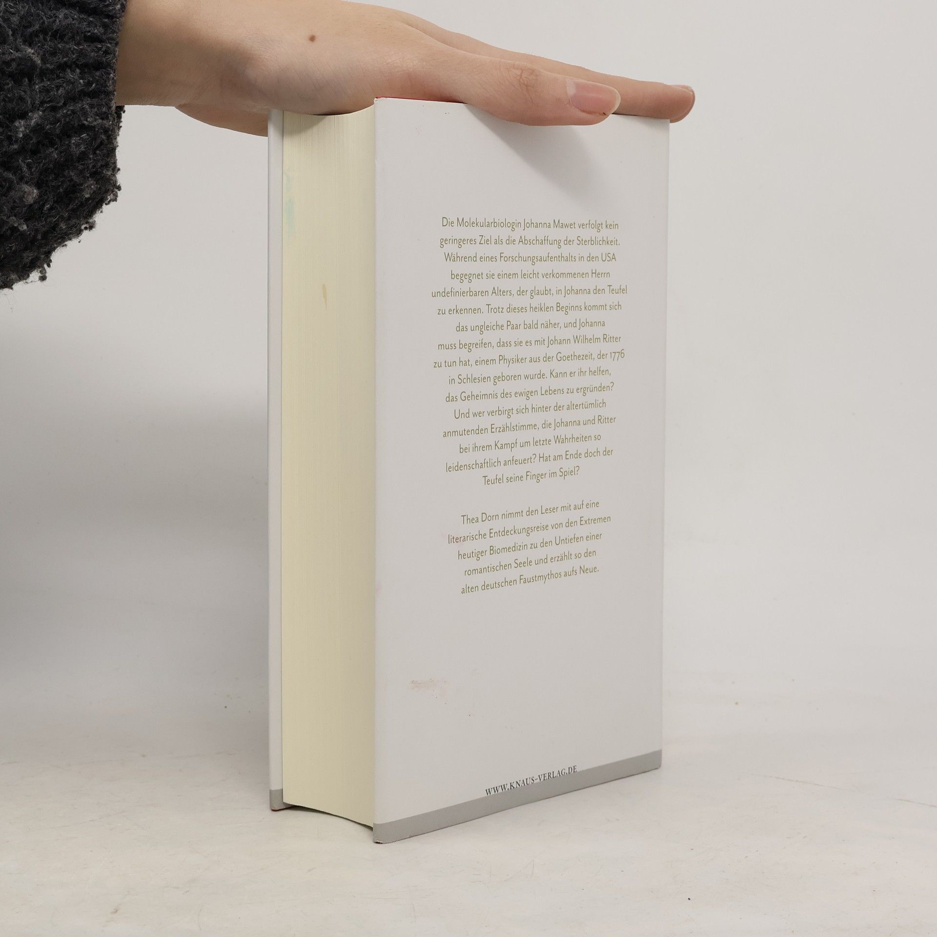 Ein Roman über die Sehnsucht nach Unsterblichkeit. Johanna Mawet ist Molekularbiologin und forscht an Zebrafischen zur Unsterblichkeit von Zellen. Während eines Forschungsaufenthalts in den USA gabelt sie einen merkwürdigen, alterslosen Herrn auf. Je näher sie ihn kennenlernt, desto abstrusere Erfahrungen macht sie mit ihm. Schließlich gibt er sein Geheimnis preis. Er sei der Physiker Johann Wilhelm Ritter, geboren 1776. Starker Tobak für eine Naturwissenschaftlerin von heute. Um seiner vermeintlichen Unsterblichkeit auf die Spur zu kommen, lässt sie seine DNA sequenzieren. Als Johannas Kollegen misstrauisch werden, bleibt dem sonderbaren Paar nur eines: die Flucht, dorthin, wo das Streben nach wissenschaftlicher Erkenntnis und schwarze Romantik sich schon immer gerne ein Stelldichein geben - nach Deutschland