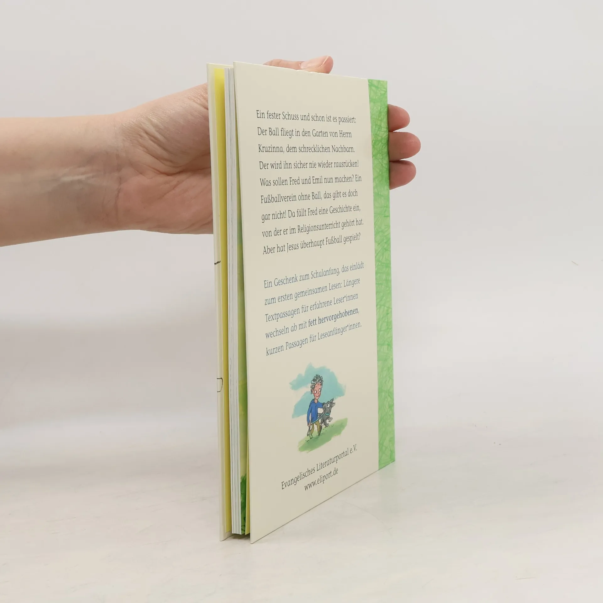 Ich heiße Fred und ich habe ein Wunder erlebt. Gut, nur ein kleines Wunder, aber es ist wirklich so passiert! Fred und Emil treffen sich nachmittags oft zum Fußballspielen. Wenn nur Herr Kruzinna, der blöde Nachbar, nicht wäre! Der kann Kinder nicht leiden und fußballspielende schon gar nicht. Als eines Tages ein Ball in seinem Garten landet, rückt er ihn nicht mehr raus. Was sollen die Jungs nun machen? Da fällt Fred Zachäus ein, von dem er im Religionsunterricht gehört hat. Wenn an der Geschichte was dran ist, müssen sie doch nur nett zu Herrn Kruzinna sein, um den Ball von ihm zurückzubekommen. Also schreiben Fred und seine Freunde einen Brief … Antje Damm erzählt den Konflikt zwischen den Kindern und dem Nachbarn parallel zur biblischen Zachäusgeschichte. Diese inspiriert die beiden Freunde zu einer ungewöhnlichen Idee, die für Fred tatsächlich in einem kleinen Wunder endet. Katja Gehrmanns Illustrationen nehmen ganz die Perspektive der Kinder ein und spiegeln deren Stimmungslage treffend wider.