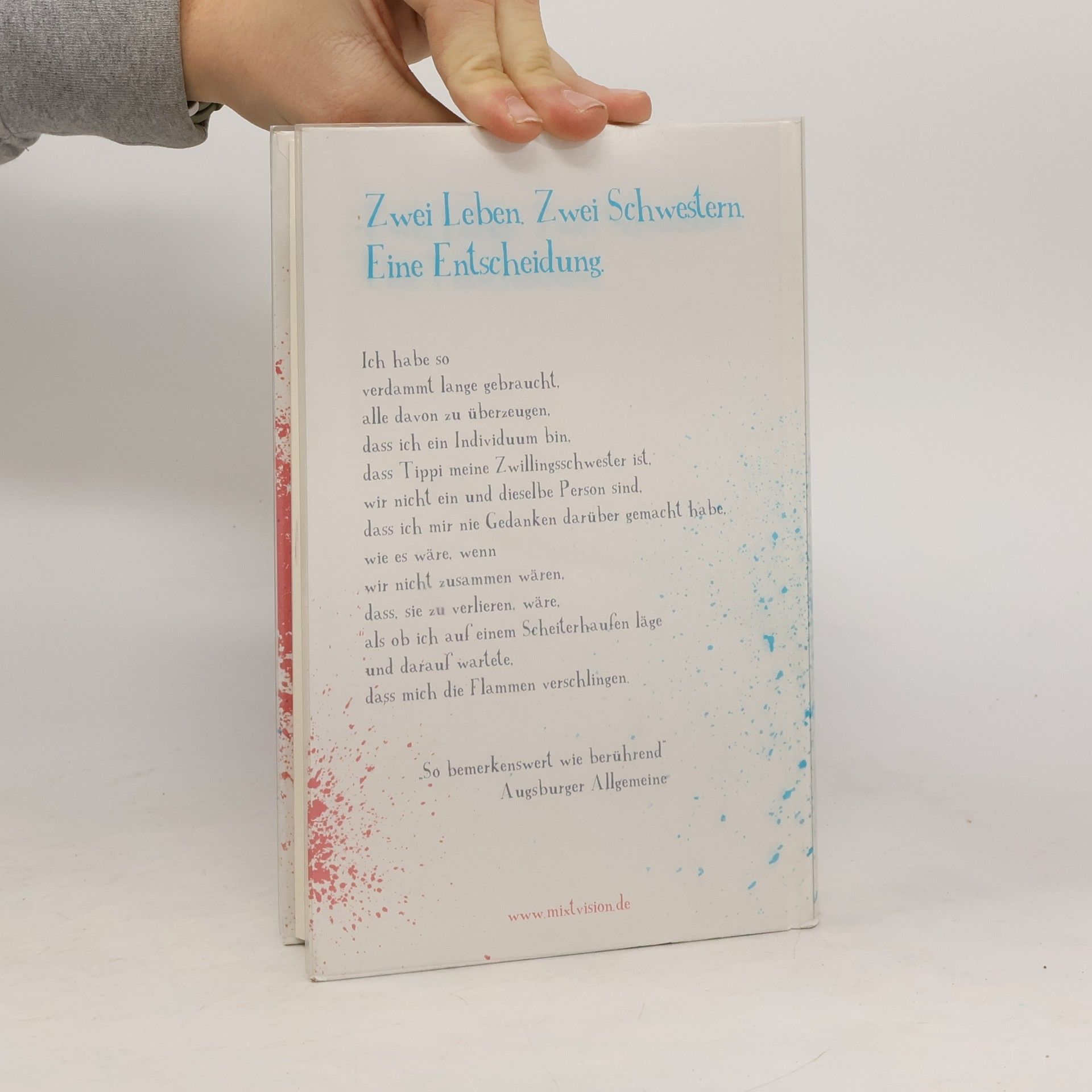 Die Schwestern Tippi und Grace sind wie andere Teenager – sie streiten sich, verlieben sich in Jungs, gehen ihren Hobbies nach ... Doch das Besondere an ihnen ist: Sie sind sich mehr verbunden als andere Schwestern – sie sind an der Hüfte zusammengewachsen. Aus der Ich-Perspektive erfahren wir, wie es ist, wenn man nie allein ist und vor eine Wahl gestellt wird, die über Leben und Tod entscheidet. Sarah Crossan, mit Die Sprache des Wassers für den Deutschen Jugendliteraturpreis nominiert, beschreibt in ihrer gewohnt mitreißenden Sprache das Leben zweier ganz außergewöhnlicher Schwester. Eine berührende Geschichte über Individualität und was es heißt, einen anderen Menschen zu lieben. Seine exklusive Ausstattung macht diesen Roman auch äußerlich zu etwas ganz besonderem: erst Umschlag und Buch ergeben Eins.