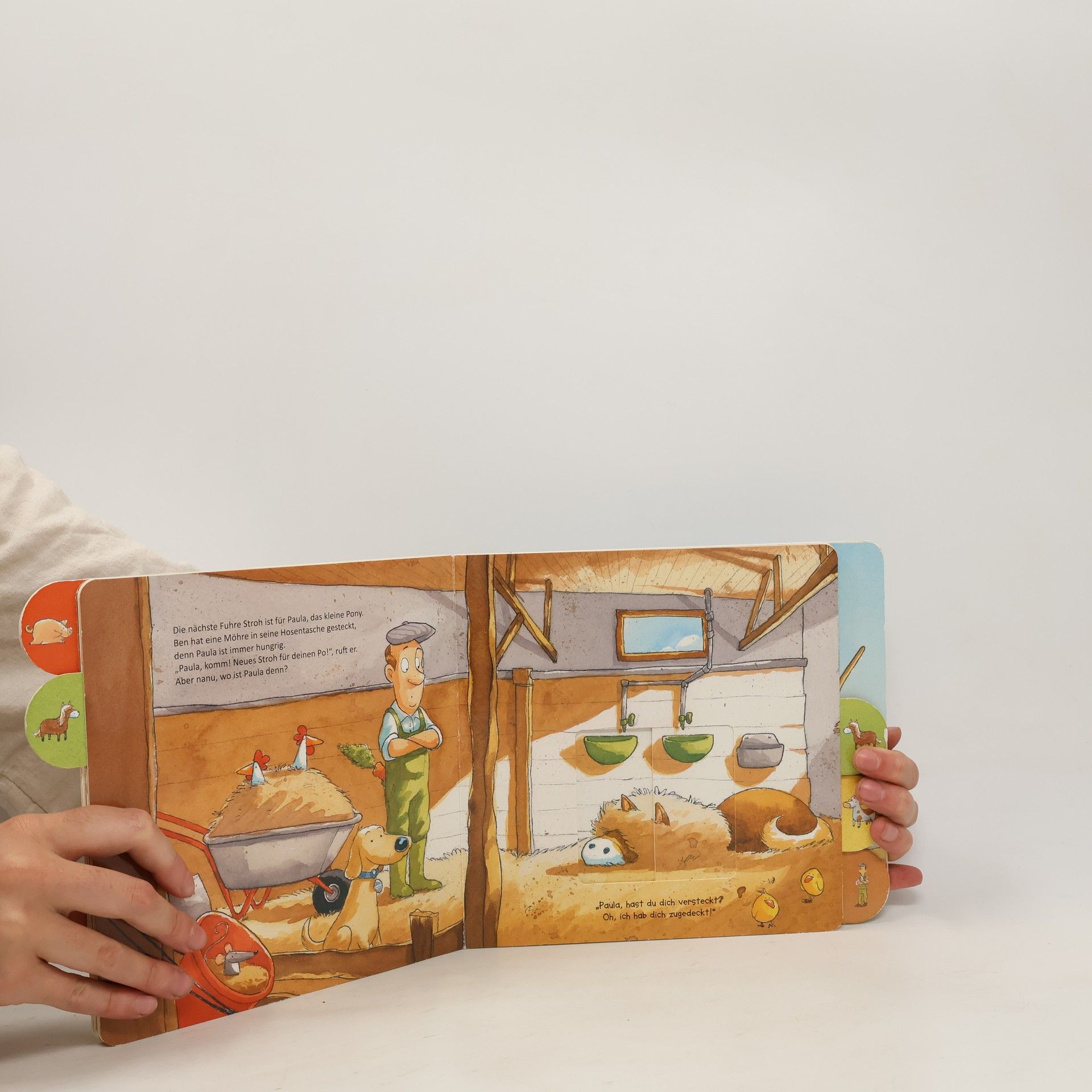 Was machen die Tiere von Bauer Ben da im Stroh? Die lustigen Schiebebilder verraten es natürlich! Ein toller Bilder-Spiel-Spaß für Kinder ab 2 Jahren.