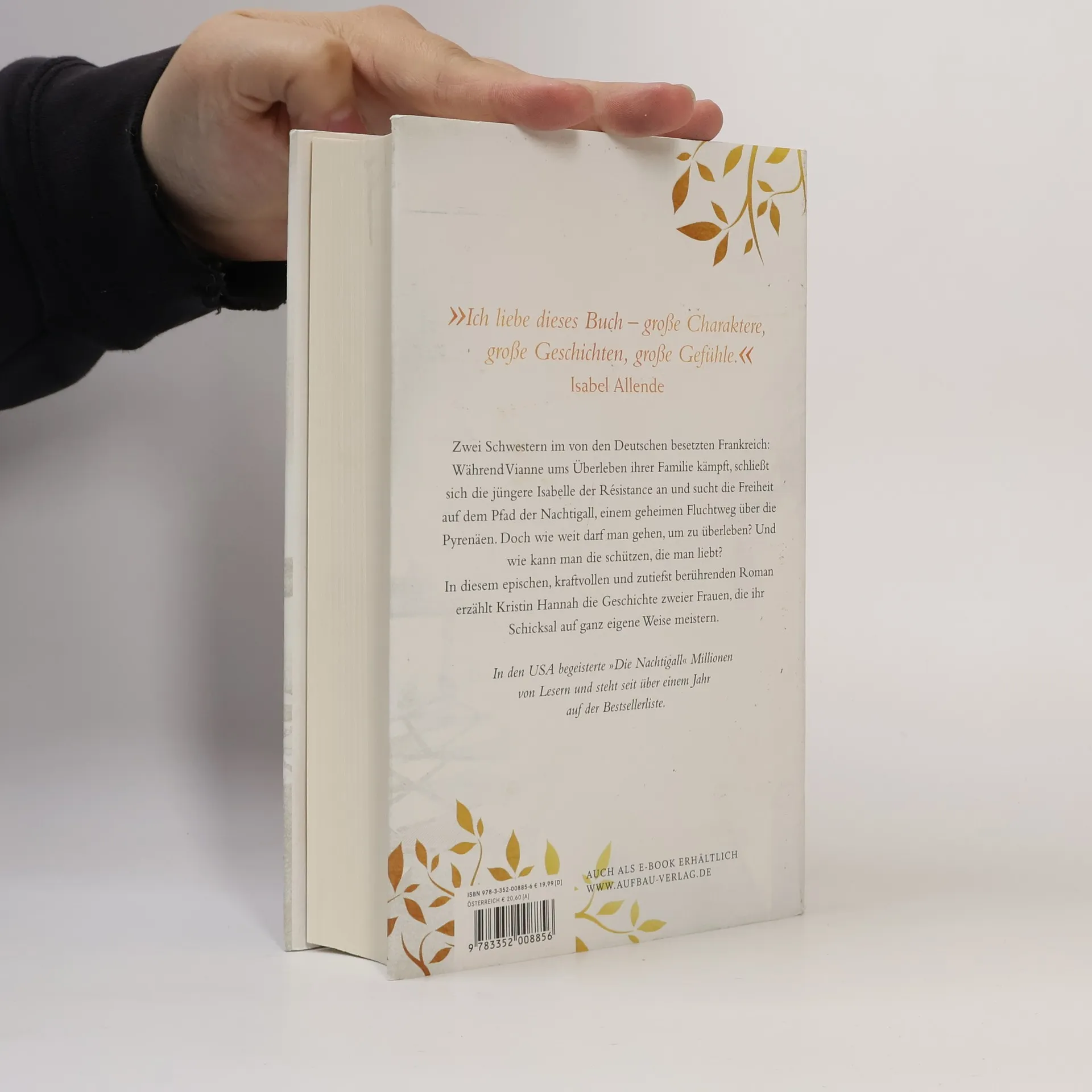 Zwei Schwestern. Die eine kämpft für die Freiheit. Die andere für die Liebe. Der Weltbestseller – die Nr. 1 aus den USA. Zwei Schwestern im von den Deutschen besetzten Frankreich: Während Vianne ums Überleben ihrer Familie kämpft, schließt sich die jüngere Isabelle der Résistance an und sucht die Freiheit auf dem Pfad der Nachtigall, einem geheimen Fluchtweg über die Pyrenäen. Doch wie weit darf man gehen, um zu überleben? Und wie kann man die schützen, die man liebt? In diesem epischen, kraftvollen und zutiefst berührenden Roman erzählt Kristin Hannah die Geschichte zweier Frauen, die ihr Schicksal auf ganz eigene Weise meistern. In den USA begeisterte „Die Nachtigall“ Millionen von Lesern und steht seit über einem Jahr auf der Bestsellerliste. „Ich liebe dieses Buch – große Charaktere, große Geschichten, große Gefühle." Isabel Allende.
