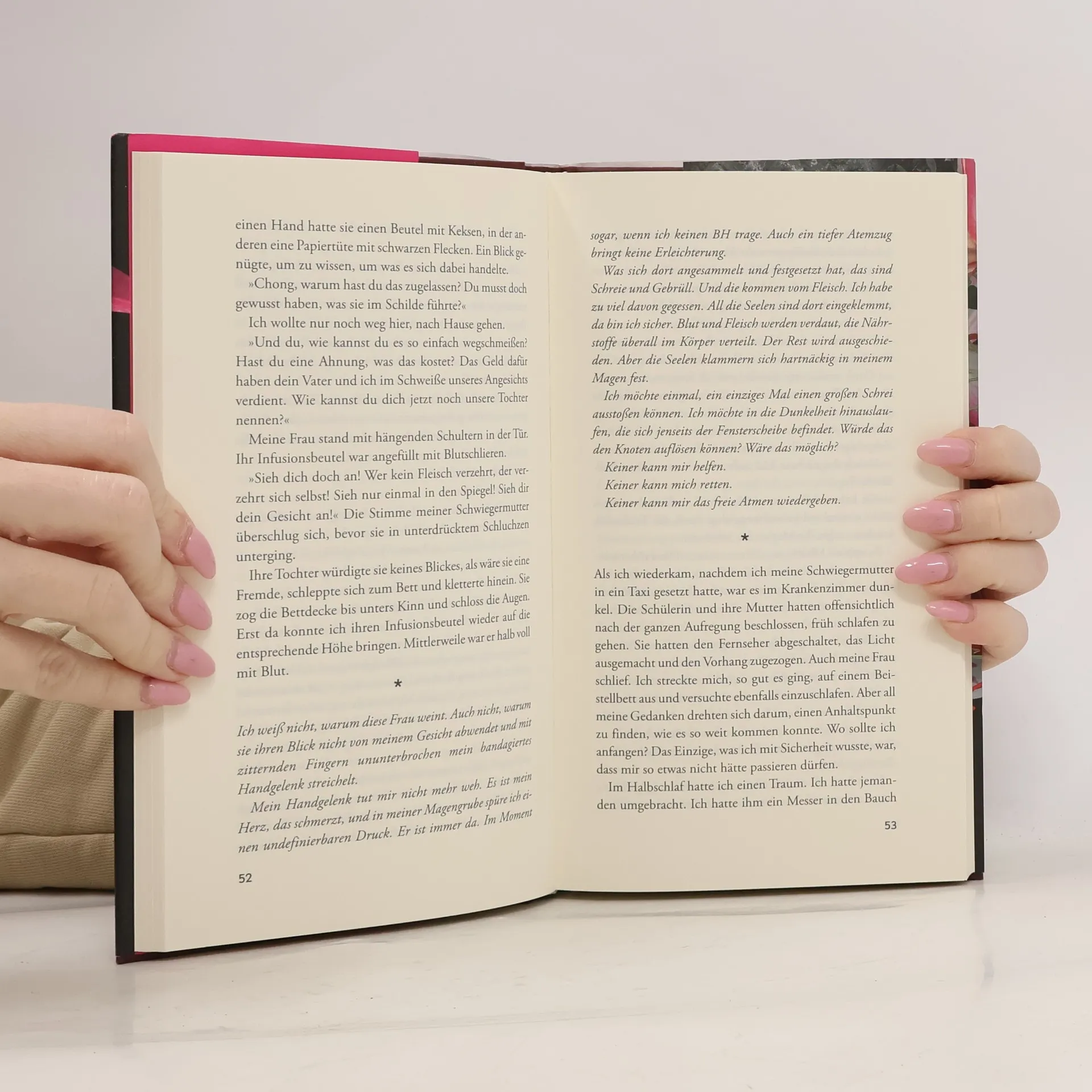 Ein seltsam verstörendes, hypnotisierendes Buch über eine Frau, die laut ihrem Ehemann an Durchschnittlichkeit kaum zu übertreffen ist – bis sie eines Tages beschließt, kein Fleisch mehr zu essen. »Bevor meine Frau zur Vegetarierin wurde, hielt ich sie für nichts Besonderes. Bei unserer ersten Begegnung fand ich sie nicht einmal attraktiv. Mittelgroß, ein Topfschnitt, irgendwo zwischen kurz und lang, gelbliche unreine Haut, Schlupflider und dominante Wangenknochen. So fühlte ich mich weder von ihr angezogen noch abgestoßen und sah daher keinen Grund, sie nicht zu heiraten.« Yeong-Hye und ihr Ehemann sind ganz gewöhnliche Leute. Er geht beflissen seinem Bürojob nach und hegt keinerlei Ambitionen. Sie ist eine zwar leidenschaftslose, aber pflichtbewusste Hausfrau. Die angenehme Eintönigkeit ihrer Ehe wird jäh gefährdet, als Yeong-Hye beschließt, sich fortan ausschließlich vegetarisch zu ernähren und alle tierischen Produkte aus dem Haushalt entfernt. »Ich hatte einen Traum«, so ihre einzige Erklärung. Ein kleiner Akt der Unabhängigkeit, aber ein fataler, denn in einem Land wie Südkorea, in dem strenge soziale Normen herrschen, gilt der Vegetarismus als subversiv.