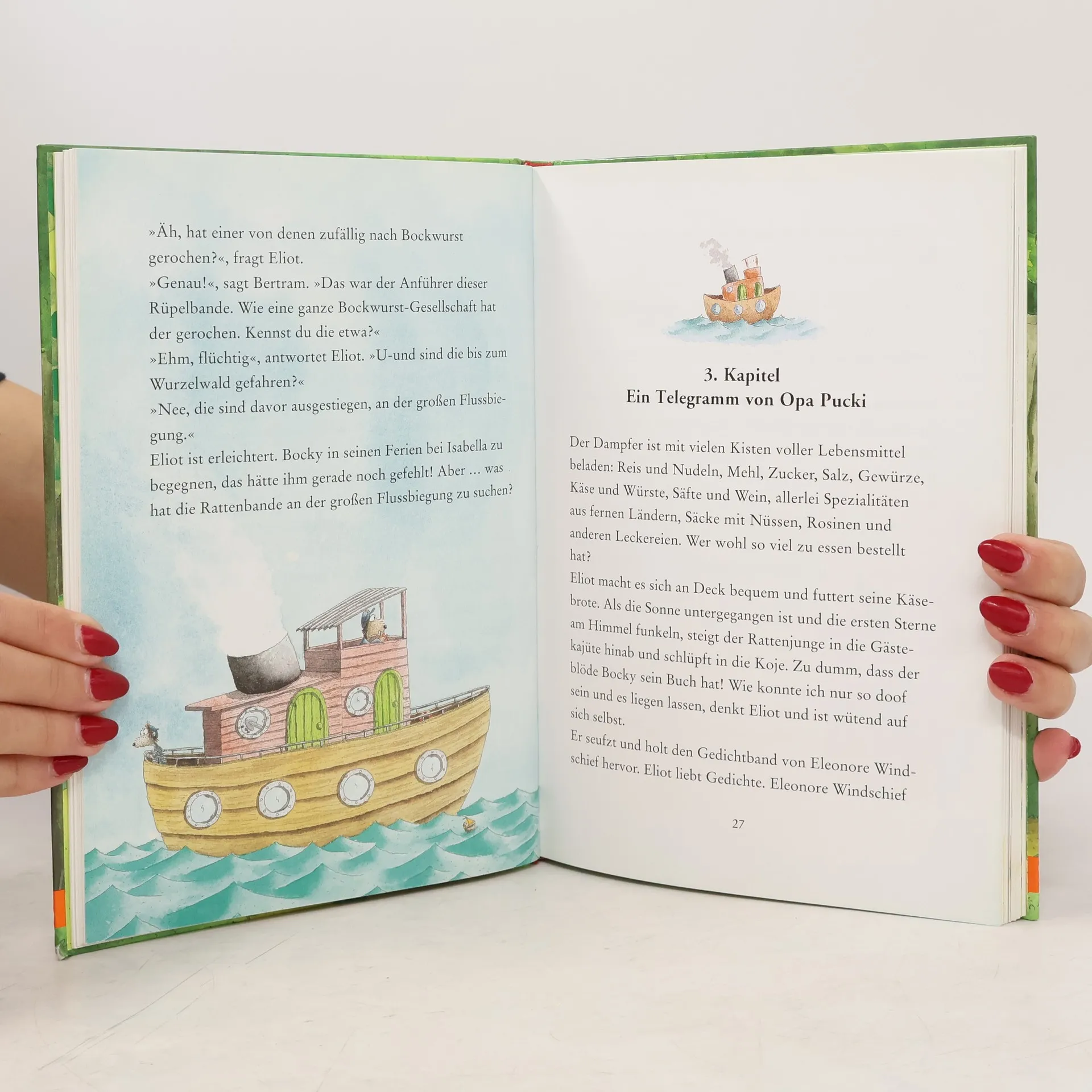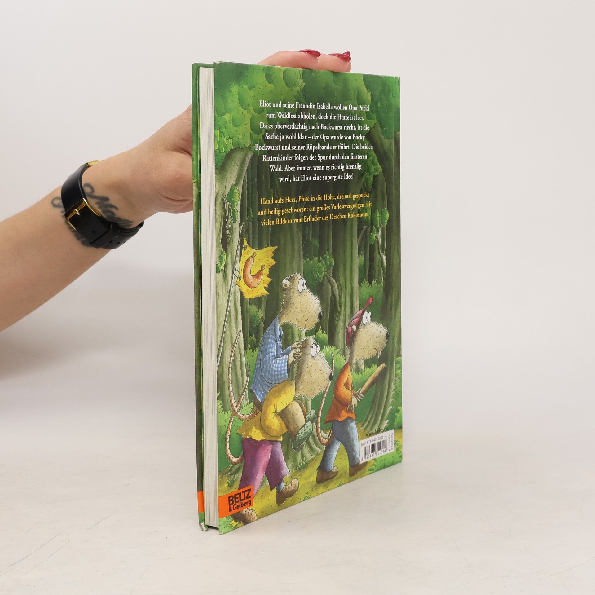 Hand aufs Herz, Pfote in die Höhe, dreimal gespuckt und heilig Endlich erscheint der 4. Band der beiden Rattenkinder Eliot und Zum Verlieben und Vorlesen schön!Au Backe! Eliot und seine Freundin Isabella wollen Opa Pucki zum Waldfest abholen, doch die Hütte ist leer. Da es oberverdächtig nach Bockwurst riecht, ist die Sache ja wohl klar – der Opa wurde von Bocky und seiner Rüpelbande entführt. Eliot und Isabella folgen der Spur durch den tiefen, finsteren Wald, wo für Rattenkinder viele Gefahren lauern. Aber immer wenn es brenzlig wird, hat Eliot ziemlich gute Ideen. So können sie nicht nur Opa Pucki befreien, sondern auch noch die Sache mit dem Schatz klären.