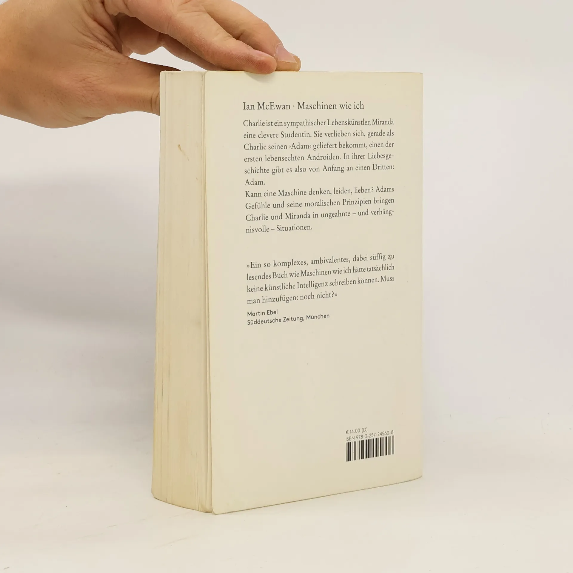 Charlie ist ein sympathischer Lebenskünstler, Miranda eine clevere Studentin. Sie verlieben sich, gerade als Charlie seinen ›Adam‹ geliefert bekommt, einen der ersten lebensechten Androiden. In ihrer Liebesgeschichte gibt es also von Anfang an einen Dritten: Adam. Kann eine Maschine denken, leiden, lieben? Adams Gefühle und seine moralischen Prinzipien bringen Charlie und Miranda in ungeahnte – und verhängnisvolle – Situationen.