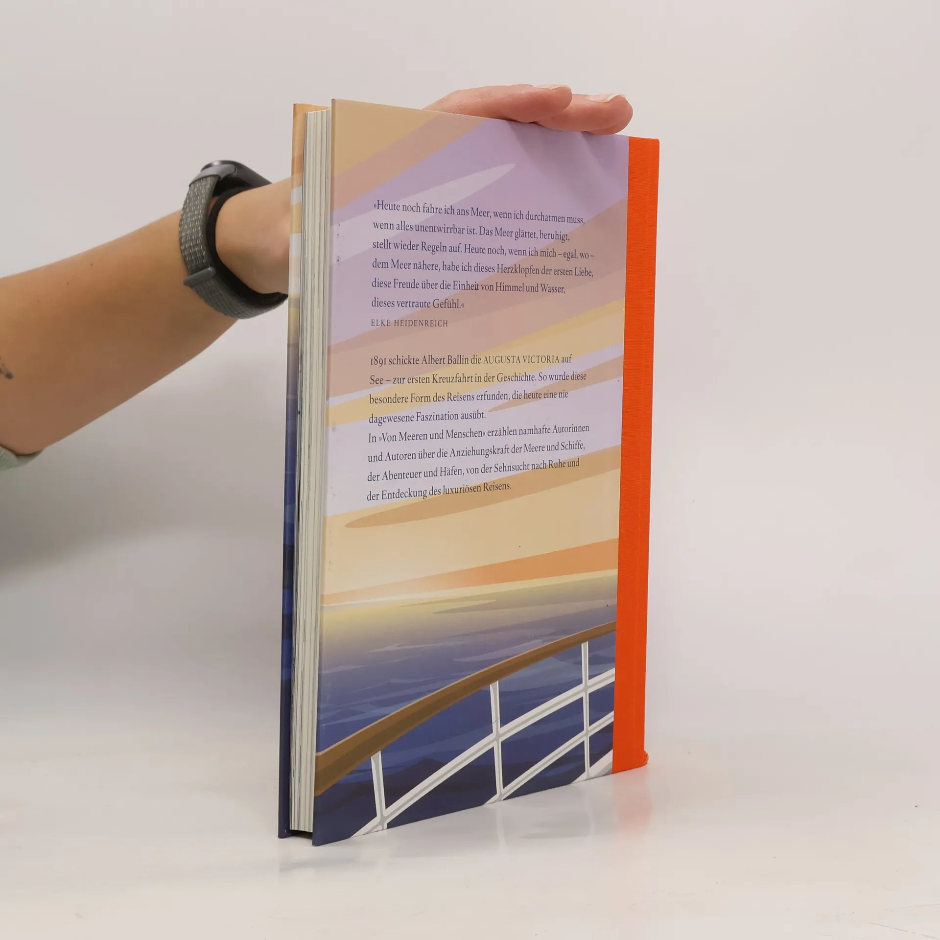 Als Albert Ballin, der damalige Generaldirektor der Hapag, 1891 ein Schiff unter „Kreuzfahrt“ auf die Meere schickte, war eine neue Form des Reisens erfunden, die bis heute ihren Zauber nicht verloren hat. Zum ersten Mal in der Geschichte der Seefahrt ging es nicht darum, mit einem Schiff möglichst schnell von A nach B zu kommen. „Von Meeren und Menschen“ erzählt mit vielen literarischen Originalbeiträgen – u. a. von Elke Heidenreich, Nora Bossong, Andreas Altmann, Daniel Kehlmann – von der Anziehungskraft der Häfen und Schiffe und dem ewigen Zauber des Meeres.