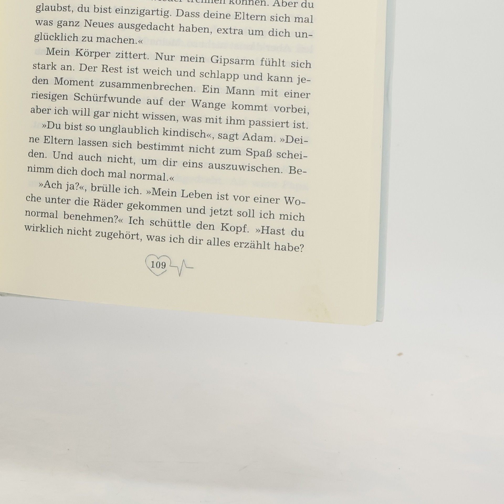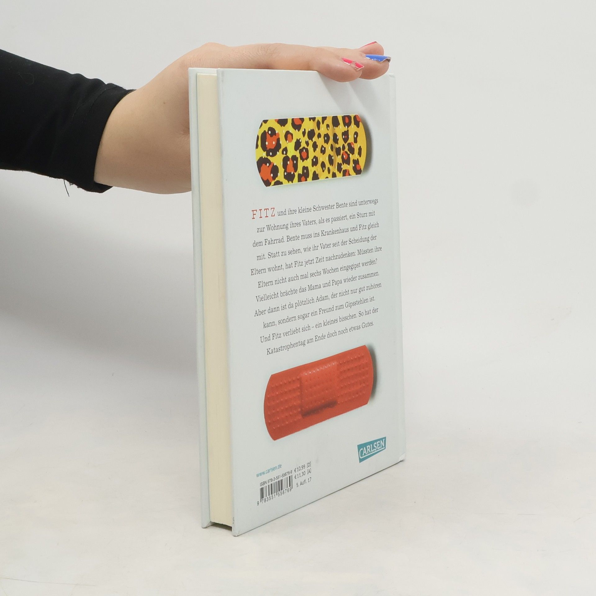 Fitz und ihre kleine Schwester Bente sind unterwegs zur Wohnung ihres Vaters, als es passiert. Ein Sturz mit dem Fahrrad. Bente muss ins Krankenhaus und Fitz gleich mit. Statt zu sehen, wie ihr Vater seit der Scheidung der Eltern lebt, hat Fitz jetzt Zeit nachzudenken: Müsste die Ehe der Eltern nicht auch mal sechs Wochen in Gips? Vielleicht brächte das Mama und Papa wieder zusammen. Aber dann ist da plötzlich Adam, und Fitz verliebt sich - ein bisschen. So hat der Katastrophentag am Ende doch noch etwas Gutes.