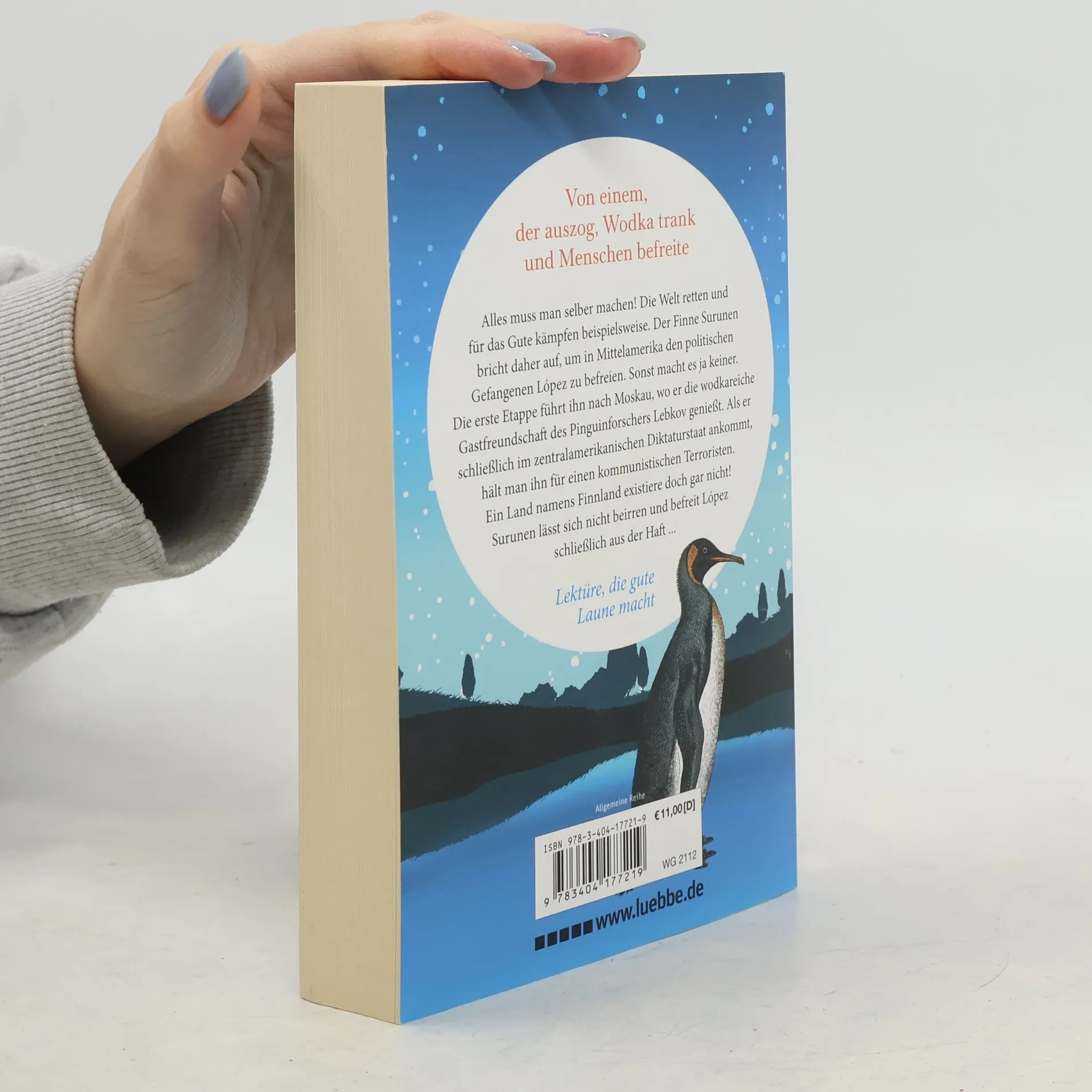 Alles muss man selber machen! Die Welt retten und für das Gute kämpfen beispielsweise. Der Finne Surunen bricht daher auf, um in Mittelamerika den politischen Gefangenen López zu befreien. Sonst macht es ja keiner. Die erste Etappe führt ihn nach Moskau, wo er die wodkareiche Gastfreundschaft des Pinguinforschers Lebkov genießt. Als er schließlich im zentralamerikanischen Diktaturstaat ankommt, hält man ihn für einen kommunistischen Terroristen. Ein Land namens Finnland existiere doch gar nicht! Surunen lässt sich nicht beirren und befreit López schließlich aus der Haft ... Lektüre, die gute Laune macht