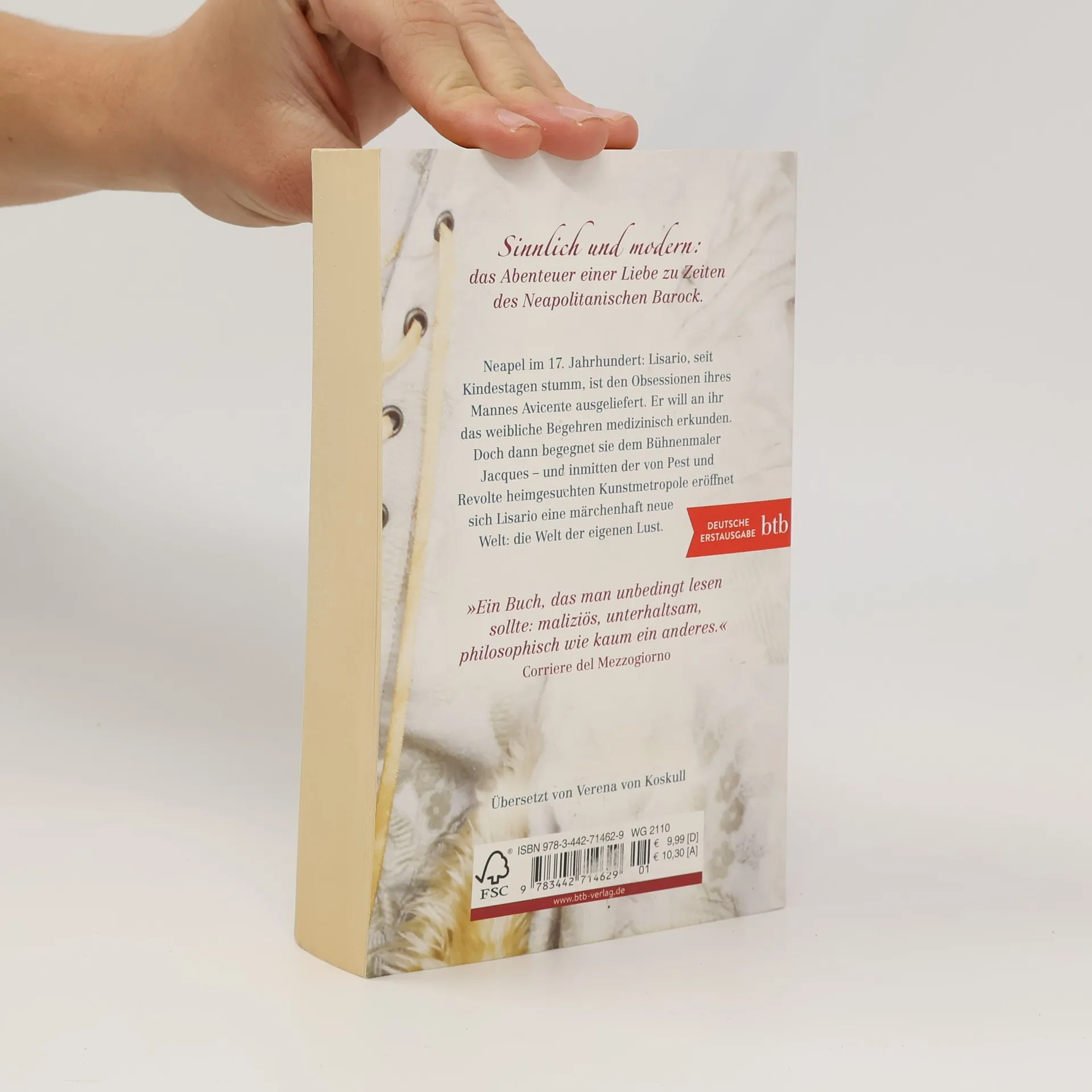 Neapel, Mitte des 17. Jahrhunderts. Die seit Kindestagen stumme Lisario erwacht aus einem mysteriösen monatelangen Schlaf. Erweckt hat sie der zwielichtige Arzt Avincente Iguelmano, der sie zum Lohn zur Frau erhält. Er nutzt sie für seine Obsession: Er will die weibliche Lust erkunden, um so die unheimliche Macht des anderen Geschlechts zu bannen. Doch einmal erwacht, sehnt sich Lisario nach einem Leben nach eigenen Vorstellungen – und brennt inmitten der von Pest und Revolten gegen die spanische Vorherrschaft erhitzten Stadt mit dem talentierten Bühnenmaler Jacques Colmar durch … Ein Roman wie ein barockes Wandgemälde: sinnlichopulent, doppelbödig, märchenhaft und doch modern.