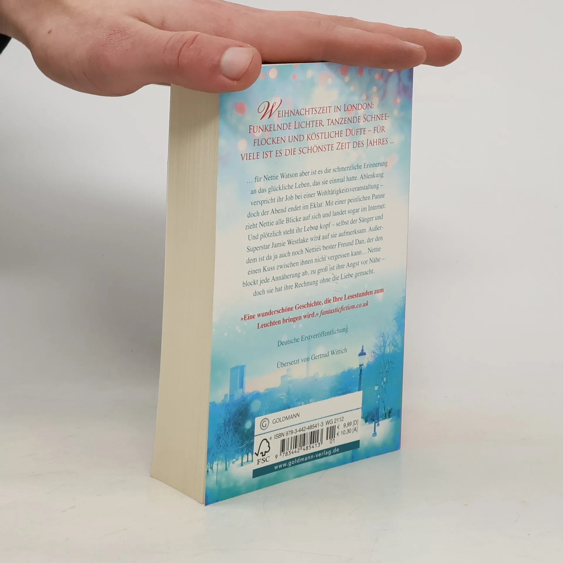 Weihnachtszeit in London: Funkelnde Lichter, tanzende Schneeflocken und köstliche Düfte – für viele ist es die schönste Zeit des Jahres. Für Nettie Watson aber ist es die schmerzliche Erinnerung an das glückliche Leben, das sie einmal hatte. Ablenkung verspricht ihr Job bei einer Charity-Veranstaltung. Doch der Abend endet peinlich: Mit einer Panne zieht Nettie alle Blicke auf sich und landet sogar im Internet. Und plötzlich steht ihr Leben kopf – selbst der Popstar Jamie Westlake wird auf sie aufmerksam. Nettie blockt jede Annäherung ab, zu groß ist ihre Angst vor Nähe – doch sie hat ihre Rechnung ohne die Liebe gemacht ...