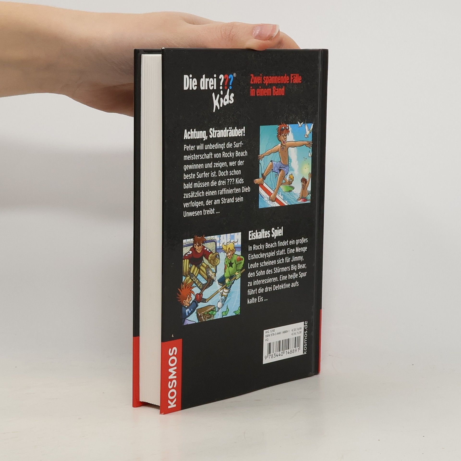 Mit Köpfchen und Raffinesse legen die drei ??? Kids den dreisten Strandräubern von Rocky Beach das Handwerk. Und ganz sicher lassen sie sich beim Eishockey-Fall nicht aufs Glatteis führen! Zwei spannende Fälle in einem Band: Achtung, Strandräuber!: Taschendiebe treiben während eines Surf-Wettbewerbs am Strand ihr Unwesen. Gar nicht leicht für die drei ??? Kids, auf dem Surfbrett zu stehen und gleichzeitig den Dieben das Handwerk zu legen... Eiskaltes Spiel: Ein Junge behauptet, er sei der Sohn eines berühmten Eishockeyspielers. Doch dieser hat angeblich keinen Sohn. Als jemand die Situation ausnutzt und vom Eishockeyspieler Schweigegeld verlangt, greifen die drei ??? Kids ein...