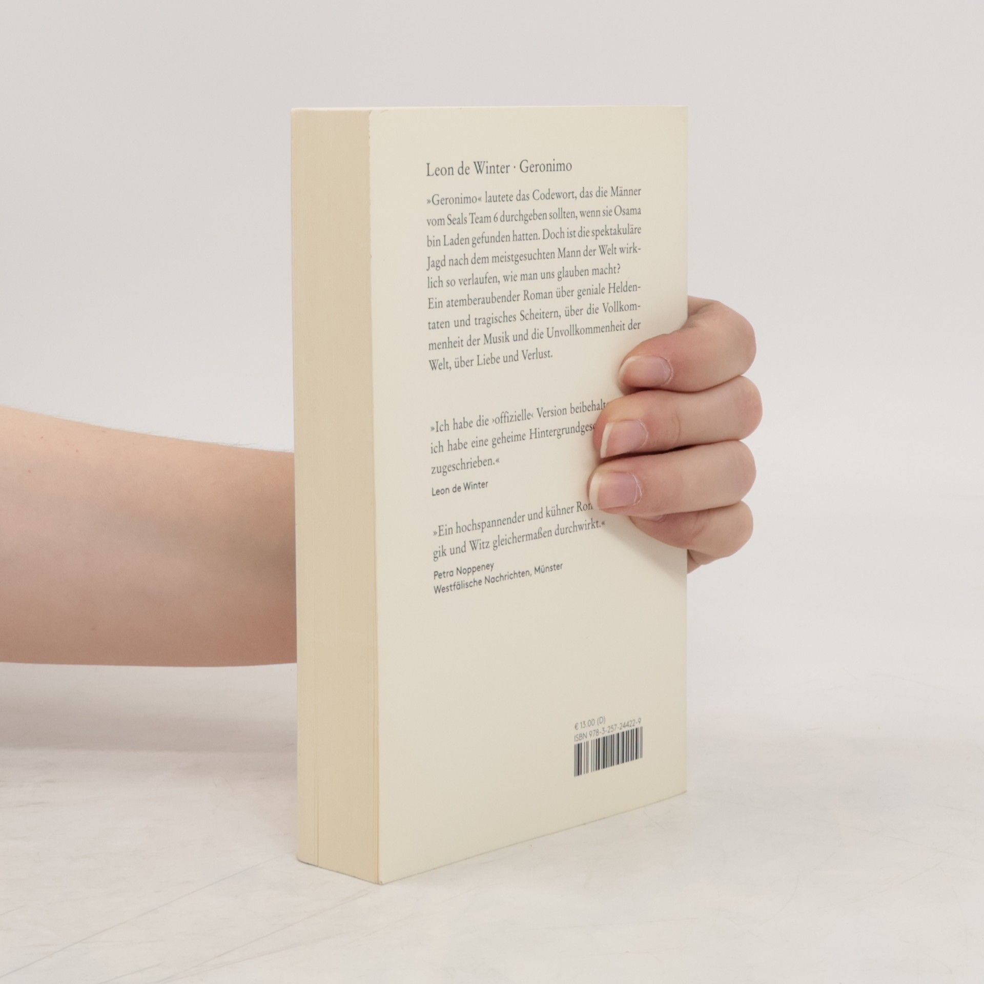 »Geronimo« lautete das Codewort, das die Männer vom Seals Team 6 durchgeben sollten, wenn sie Osama bin Laden gefunden hatten. Doch ist die spektakuläre Jagd nach dem meistgesuchten Mann der Welt wirklich so verlaufen, wie man uns glauben macht? Ein atemberaubender Roman über geniale Heldentaten und tragisches Scheitern, über die Vollkommenheit der Musik und die Unvollkommenheit der Welt, über Liebe und Verlust.