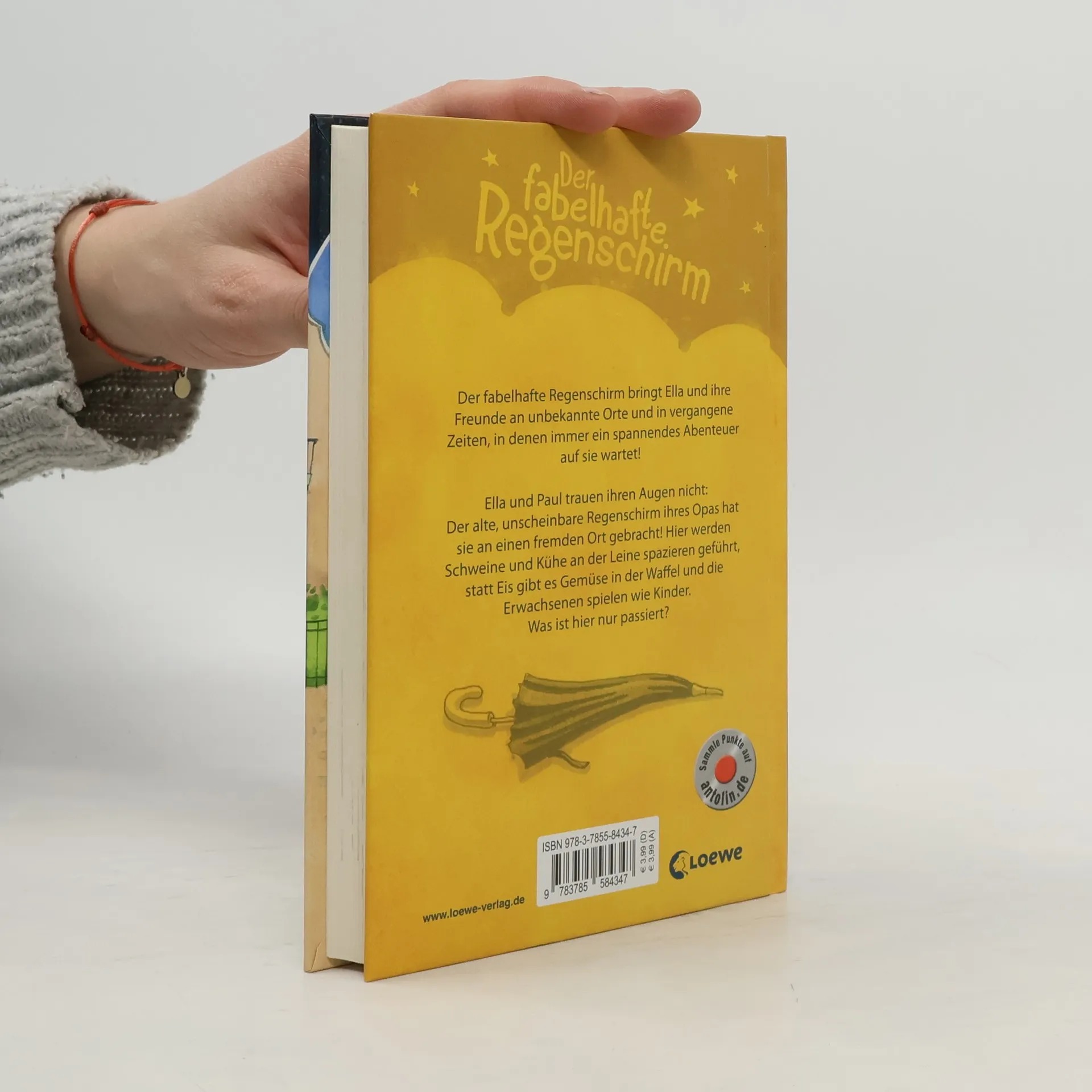 Ella und Paul trauen ihren Augen nicht: Der alte, unscheinbare Regenschirm ihres Opas hat sie an einen fremden Ort gebracht! Hier werden Schweine und Kühe an der Leine spazieren geführt, statt Eis gibt es Gemüse in der Waffel und die Erwachsenen spielen wie Kinder! Was ist hier nur passiert? Der fabelhafte Regenschirm bringt Ella und ihre Freunde an unbekannte Orte und in vergangene Zeiten, in denen immer ein spannendes Abenteuer auf sie wartet! Die reich illustrierte Abenteuerreihe für Jungen und Mädchen ab 8 Jahren im Stil der Bestseller-Reihe Das magische Baumhaus . In jedem Band müssen die sympathischen Charaktere ein Rätsel lösen und jemandem helfen. Hierzu reisen sie in der Zeit, an fremde Orte und treffen interessante und mitunter auch berühmte Persönlichkeiten. Mehr Infos rund um Der fabelhafte Regenschirm unter: www.fabelhafter-regenschirm.de