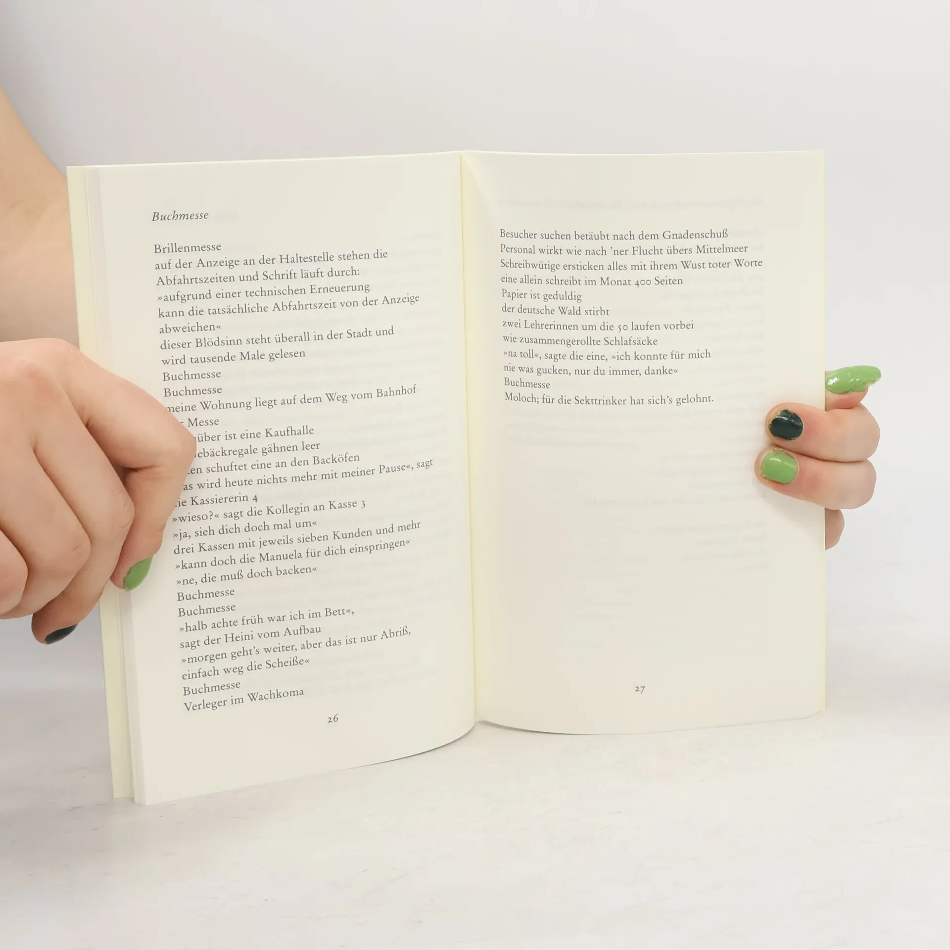 Keine humpelnden Wortgebilde auf Krücken und keine Selbstbeweihräucherungen eines Dichterlings. Lüüürik, ein zuweilen hochdotierter Dilettantenstadl, ist mit Deschle nicht zu machen. Die deutsche Lyrikszene strotzt nur so von lähmender, entsetzlicher Langeweile. Dieser Szene gehört Deschle, der hier seinen ersten Gedichtband veröffentlicht, zum Glück nicht an.
