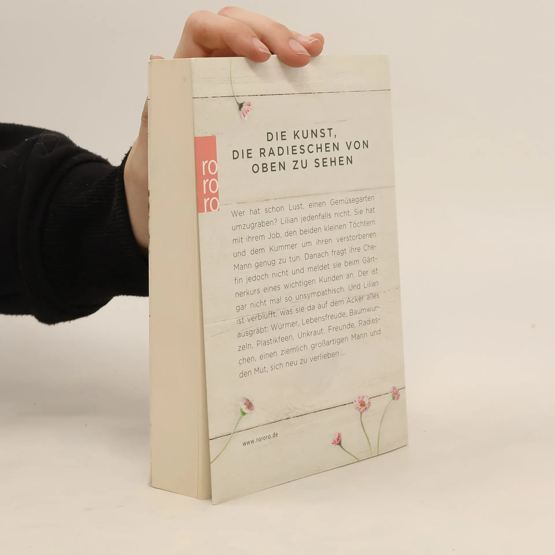 Die Kunst, die Radieschen von oben zu sehenWer hat schon Lust, einen Gemüsegarten umzugraben? Lilian jedenfalls nicht. Sie hat mit ihrem Job, den beiden kleinen Töchtern und dem Kummer um ihren verstorbenen Mann genug zu tun. Danach fragt ihre Chefin jedoch nicht und meldet sie beim Gärtnerkurs eines wichtigen Kunden an. Der ist gar nicht mal so unsympathisch. Und Lilian ist verblüfft, was sie da auf dem Acker alles ausgräbt: Würmer, Lebensfreude, Baumwurzeln, Plastikfeen, Unkraut, Freunde, Radieschen, einen ziemlich großartigen Mann, und den Mut, sich neu zu verlieben …