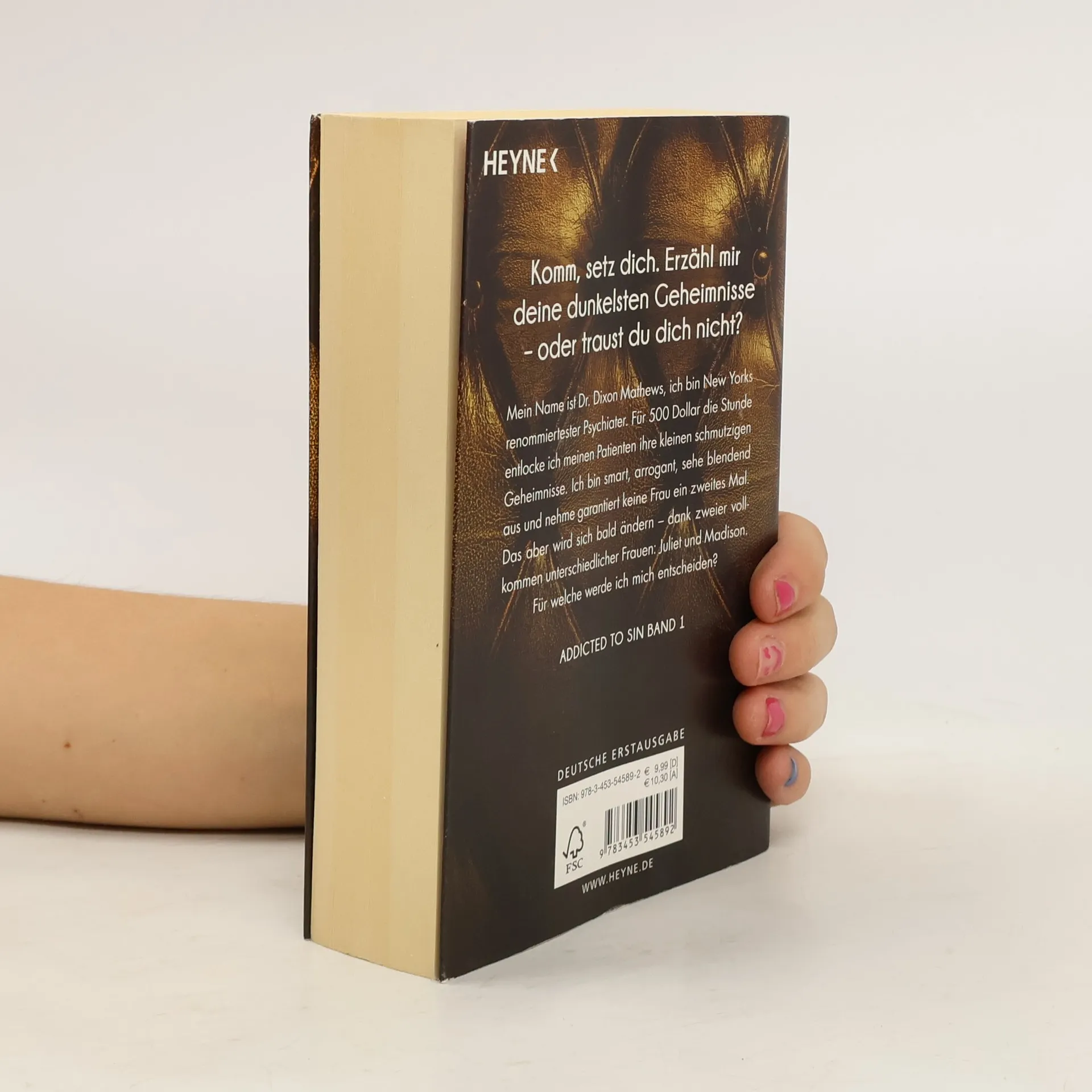 Komm, setz dich. Erzähl mir deine dunkelsten Geheimnisse – oder traust du dich nicht? Mein Name ist Dr. Dixon Mathews, ich bin New Yorks renommiertester Psychiater. Für 500 Dollar die Stunde entlocke ich meinen Patienten ihre kleinen schmutzigen Geheimnisse. Ich bin smart, arrogant, sehe blendend aus und nehme garantiert keine Frau ein zweites Mal. Das aber wird sich bald ändern – dank zweier vollkommen unterschiedlicher Frauen, die doch eines gemeinsam haben: Leidenschaft und Hingabe. Für welche werde ich mich entscheiden?