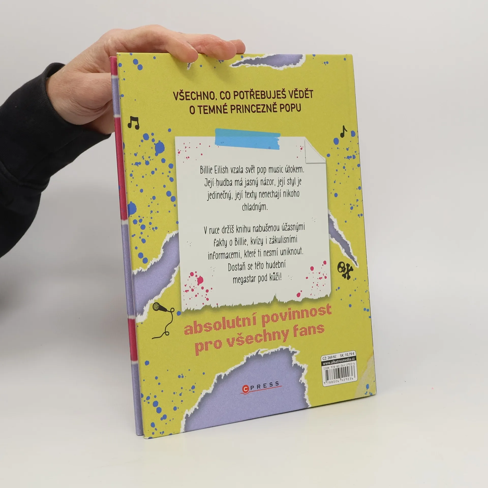Všechno, co potřebuješ vědět o temné princezně popu. Billie Eilish vzala svět pop music útokem. Její hudba má jasný názor, její styl je jedinečný, její texty nenechají nikoho chladným. V ruce držíš knihu nabušenou úžasnými fakty o Billie, kvízy i zákulisními informacemi, které ti nesmí uniknout. Dostaň se této hudební megastar pod kůži! Absolutní povinnost pro všechny fans.