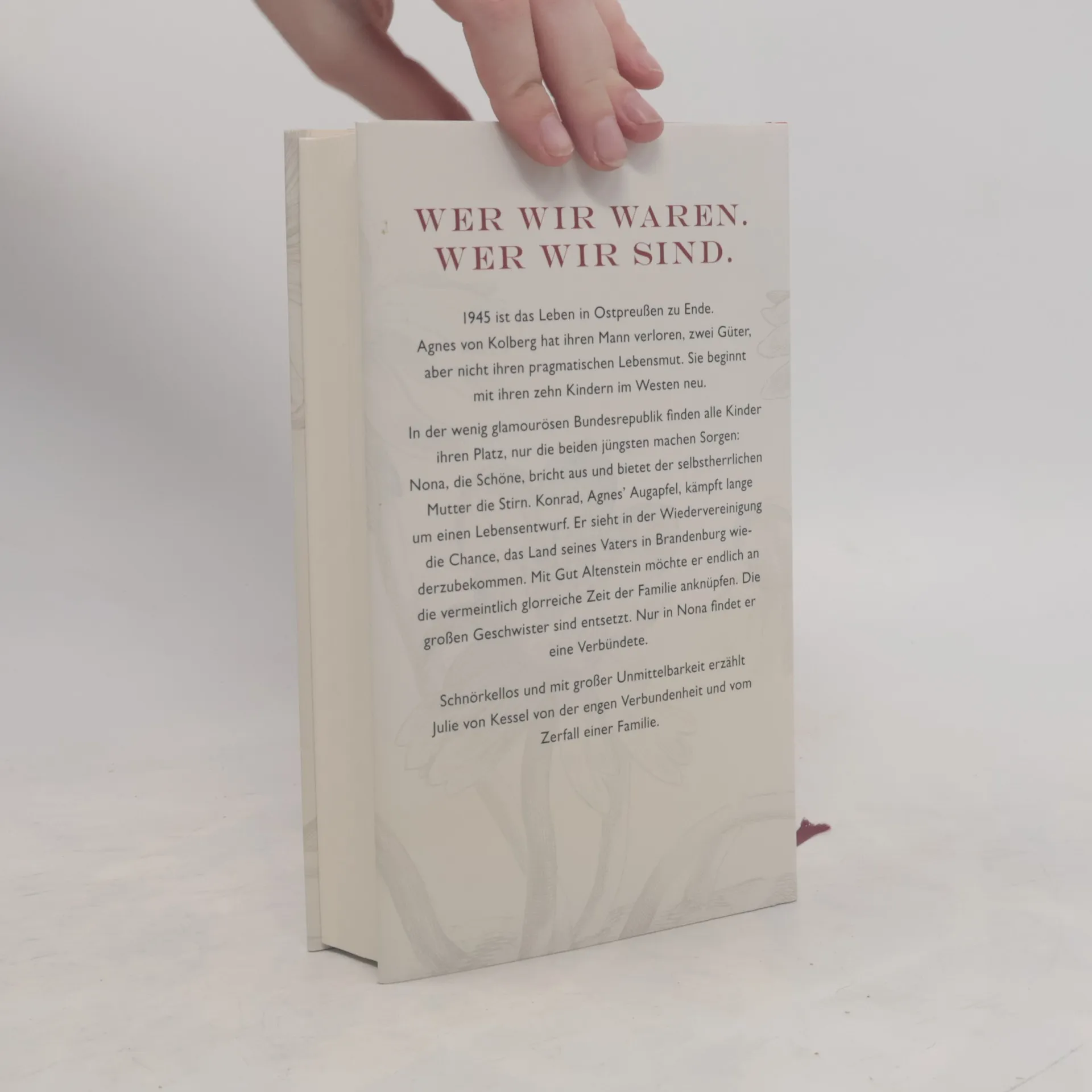 Die Geschichte einer alten Adelsfamilie, die an ihrem Erbe fast zerbricht, beginnt im Winter 1945, als ein Kind in einem überfüllten Zug von Königsberg nach Westen sitzt. Der kleine Konni blickt sehnsüchtig in den Schnee, während seine Mutter, Gräfin Agnes von Kolberg, später mit seinen zehn Geschwistern nach Altenstein in Brandenburg folgen wird. Der Vater fällt im Kampf um Ostpreußen, und die Familie muss auch ihren Sommersitz auf der Flucht vor der Front verlassen. Aufgewachsen in ärmlichen Verhältnissen bei Bonn, werden die Geschwister durch die traumatischen Erlebnisse ihrer Kindheit und den Umgang mit der selbstherrlichen Matriarchin Agnes eng zusammengeschweißt. Besonders Konni und seine Schwester Nona unterstützen sich durch die Höhen und Tiefen ihrer Ehen, Scheidungen und finanziellen Nöte. Doch als Konni seine Chance wittert, das Gut Altenstein zurückzuholen, entbrennt ein erbitterter Streit zwischen den Geschwistern. Dieser Konflikt wirft viele Fragen auf: politische und gesellschaftliche, sowie solche nach alten Wunden und Loyalitäten. Die Erzählung thematisiert den Zerfall einer adligen Familie und ein exemplarisches Stück deutscher Geschichte. Julie von Kessel schildert die Charaktere mit klarer Sprache und großer Unmittelbarkeit, sodass sie lange im Gedächtnis bleiben.