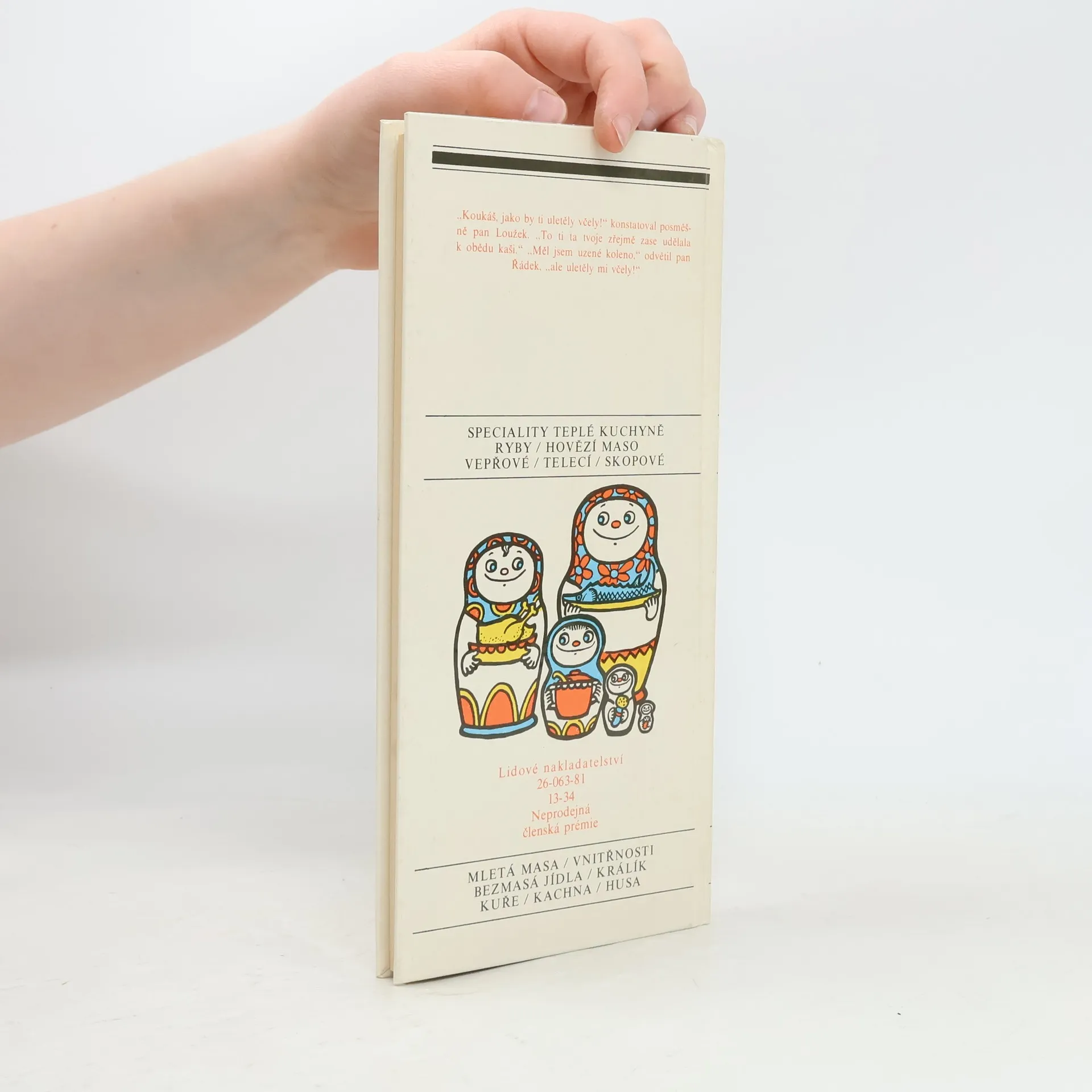 Speciality teplé kuchyně - Ryby - Hovězí maso - Vepřové - Telecí - Skopové - Mletá masa - Vnitřnosti - Bezmasá jídla - Králík - Kuře - Kachna - Husa.