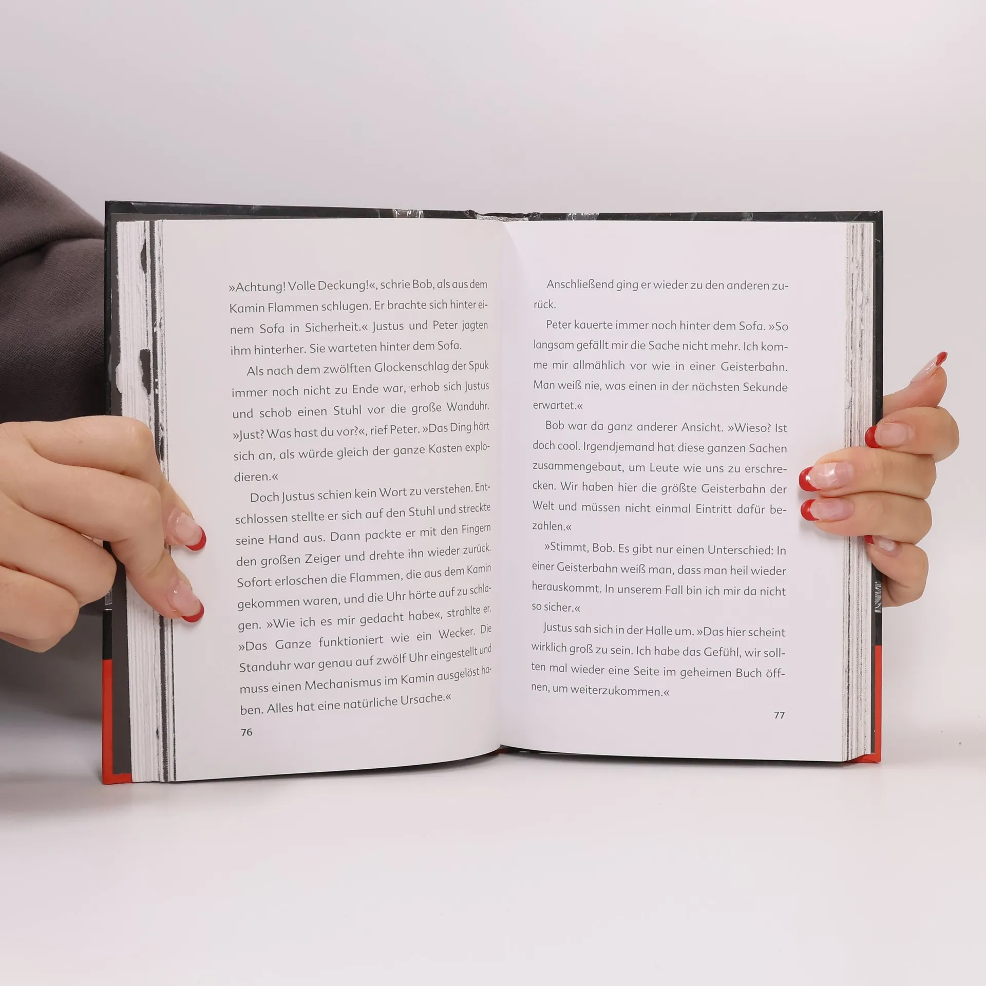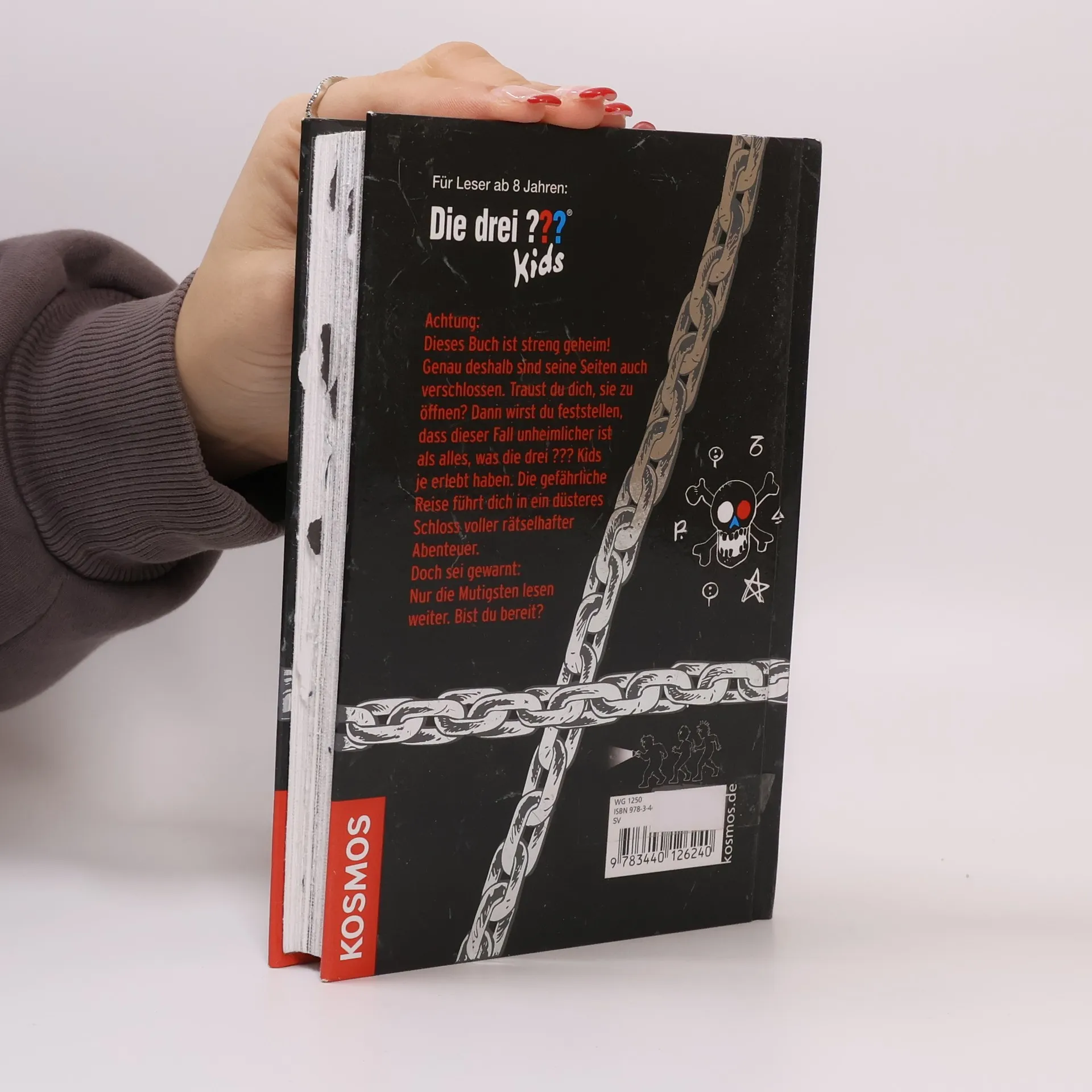Justus, Peter und Bob machen einen aufregenden Fund: ein geheimes Buch, in dem die Seiten verschlossen sind! Was es damit auf sich hat? Nicht nur der Spürsinn und die Entschlossenheit der drei Detektive sind hier gefragt, sondern auch die Leser wird es viel Mut kosten die Seiten aufzuschlitzen. Auf jeder zweiten Doppelseite lesen sie haargenau das, was die Ermittler gerade in dem geheimen Buch lesen. Spannung und Nervenkitzel sind bei diesem außergewöhnlichen „Buch im Buch“ garantiert.