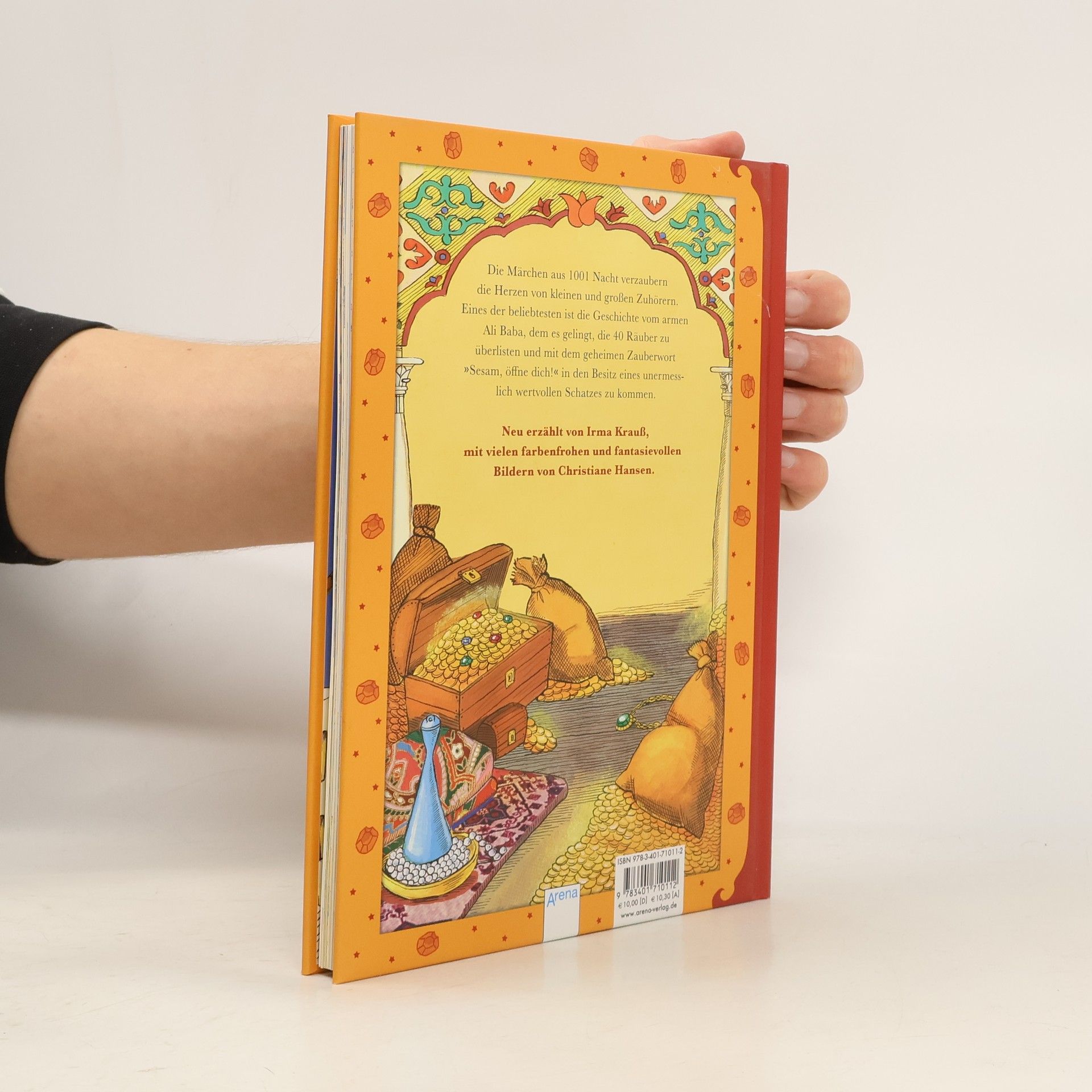 Die Märchen aus 1001 Nacht verzaubern die Herzen von kleinen und großen Zuhörern. Eines der beliebtesten ist die Geschichte vom armen Ali Baba, dem es gelingt die vierzig Räuber zu überlisten und mit dem geheimen Zauberwort „Sesam, öffne dich!“ in den Besitz eines unermesslich wertvollen Schatzes zu kommen. Neu erzählt von Irma Krauß, mit vielen farbenfrohen und fantasievollen Bildern von Christiane Hansen.