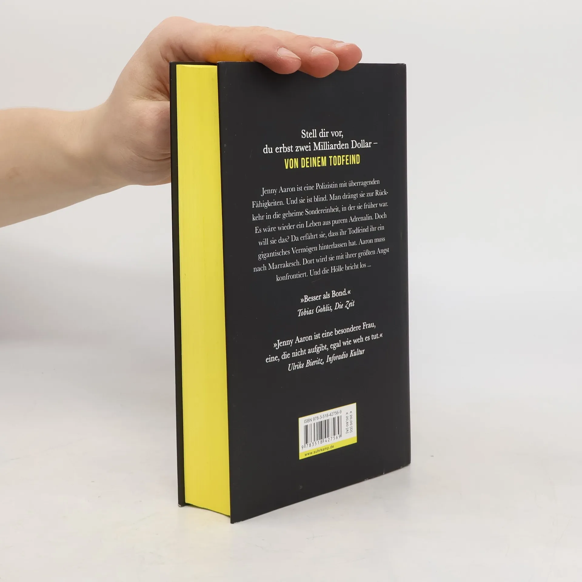 Jenny Aaron ist eine Polizistin mit überragenden Fähigkeiten. Und sie ist blind. Man drängt sie zur Rückkehr in die geheime Sondereinheit, in der sie früher war. Es wäre wieder ein Leben aus purem Adrenalin. Doch will sie das? Als ihre Vergangenheit sie einholt, muss sie sämtliche Zweifel hinter sich lassen. In Marrakesch wartet der gefährlichste Mann der Welt auf sie. Jemand, von dem viele glauben, dass er nur ein Mythos sei. Aaron erfährt, was er ihr angetan hat. Um ihn zu töten, ist sie bereit, alles zu opfern, was ihr je etwas bedeutete.
