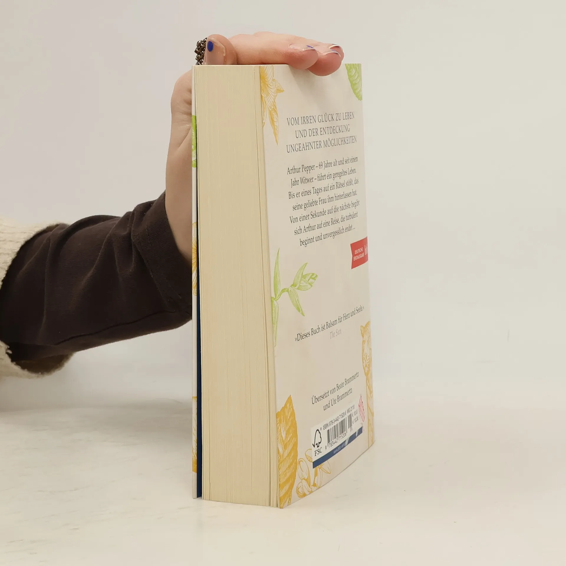 Arthur Pepper. 69 Jahre alt. Seit einem Jahr Witwer. Führt ein geregeltes Leben ohne größere Überraschungen – bis er auf ein Armband seiner verstorbenen Frau stößt, das er noch niemals zuvor gesehen hat. Hatte seine Frau Geheimnisse vor ihm? Einen Liebhaber? Wo kommen die acht Anhänger her? Um das herauszufinden, muss er aus seiner Routine ausbrechen und sich auf die Spuren dieses Armkettchens begeben. Und so kommt es, dass er einen Tiger abwehren muss, mit einem bekannten Autoren spricht, nackt vor einer Kunstklasse posiert – und somit letztendlich nicht nur seiner Frau näher kommt, sondern auch sich selbst. Und vielleicht auch einer neuen Liebe …
