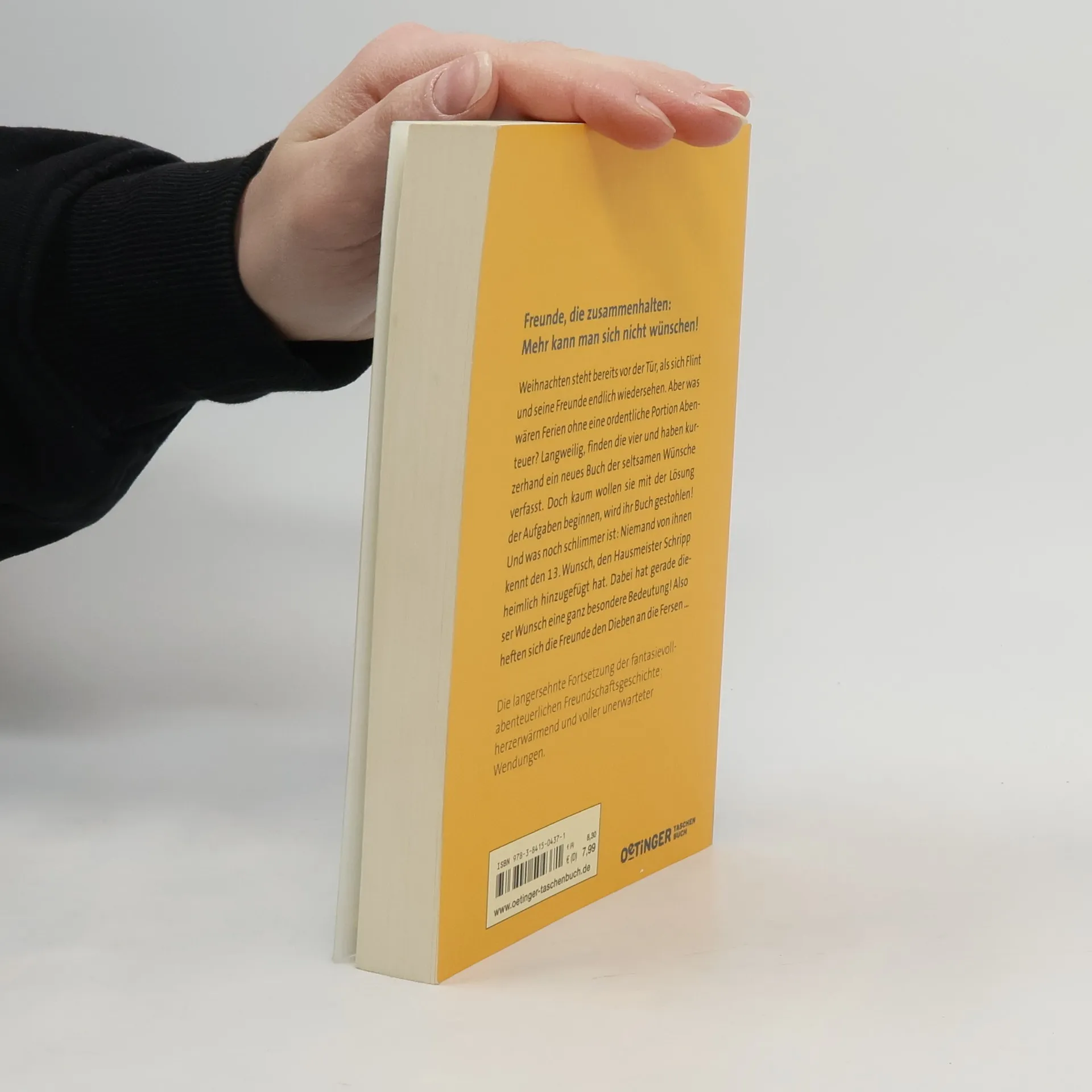 Freunde, die zusammenhalten: Mehr kann man sich nicht wünschen! Gerade haben Finn und seine Freunde das Rätsel um das Buch der seltsamen Wünsche gelöst, da geht das Abenteuer schon weiter. Sie beschließen, in diesen Ferien ein ganz eigenes Buch der Wünsche zu schreiben. Doch kaum wollen sie mit der Lösung der Aufgaben beginnen, wird ihr Buch gestohlen! Und was noch schlimmer ist: Niemand von ihnen kennt den 13. Wunsch von Hausmeister Schripp. Aber die Freunde geben nicht auf und heften sich den Dieben an die Fersen. Die langersehnte Fortsetzung des Kinderbuch-Klassikers von Angie Westhoff. Fantasievoll-abenteuerliche Freundschaftsgeschichte: herzerwärmend und voller unerwarteter Wendungen. Begeistert Kinder ab 10 Jahren. Gelistet bei Antolin.
