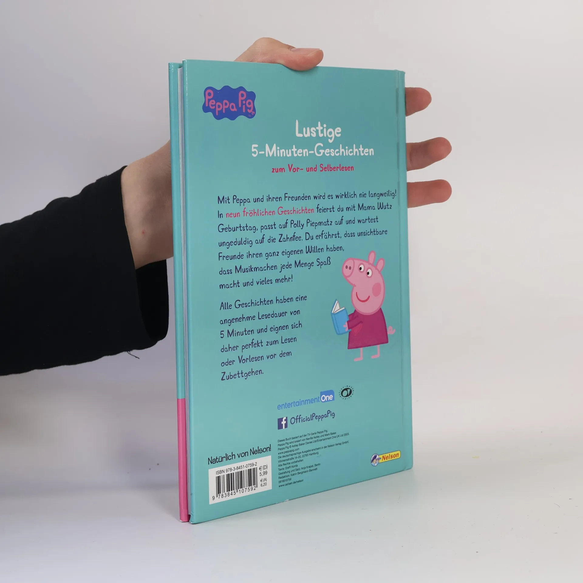 Neue Abenteuer mit Peppa und ihren Freunden! In neun fröhlichen Geschichten feierst du mit Mama Wutz Geburtstag, passt auf Polly Piepmatz auf und wartest ungeduldig auf die Zahnfee. Du erfährst, dass unsichtbare Freunde ihren ganz eigenen Willen haben, das Musikmachen jede Menge Spaß macht und vieles mehr! Alle Geschichten haben eine angenehme Lesedauer von 5 Minuten und eignen sich daher perfekt zum Lesen oder Vorlesen vor dem Zubettgehen.
