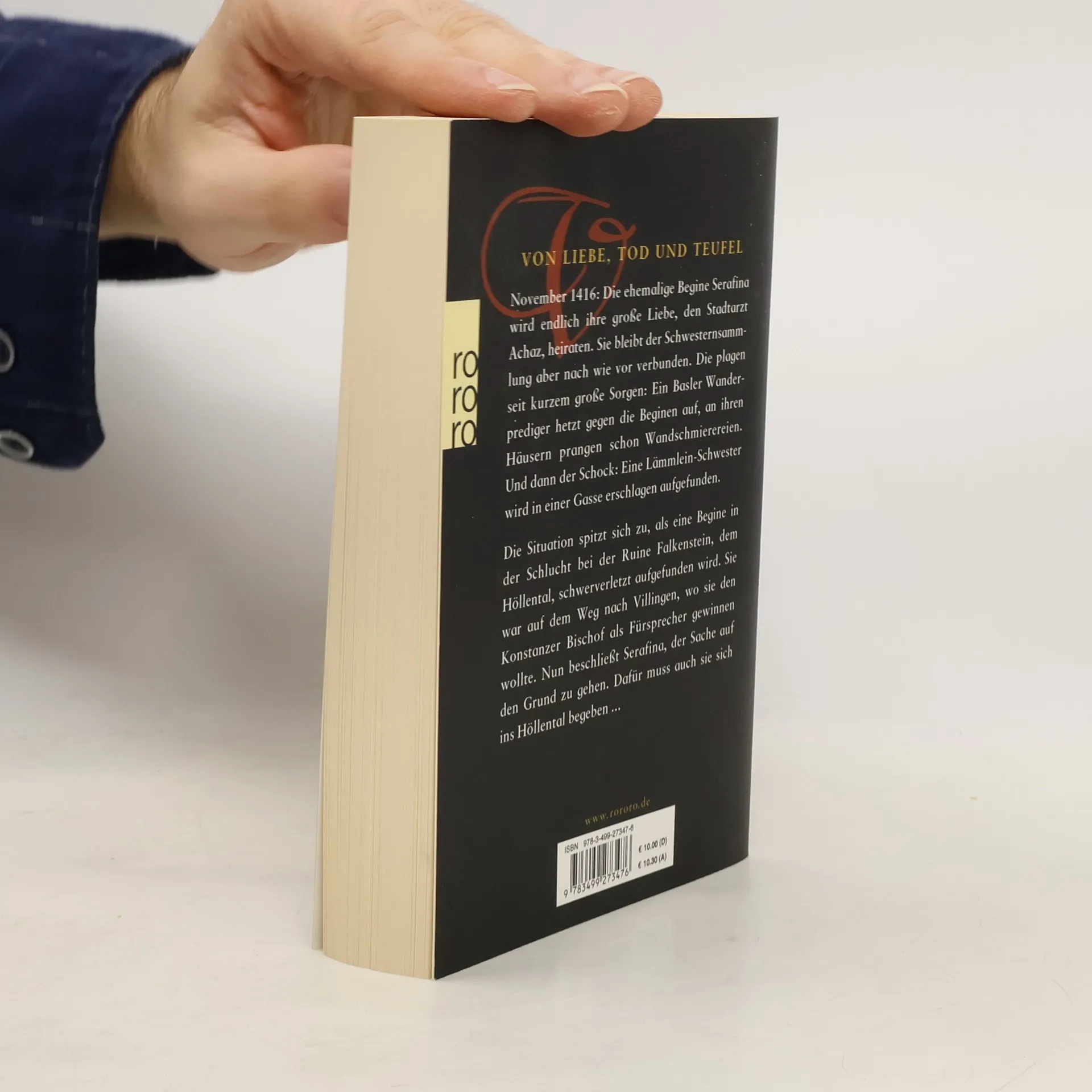 November 1416: Die ehemalige Begine Serafina heiratet endlich ihre große Liebe, den Stadtarzt Achaz. Sie bleibt der Schwesternsammlung aber nach wie vor verbunden. Die plagen seit kurzem große Sorgen: Ein Basler Wanderprediger hetzt gegen die freien Schwestern auf, an ihren Häusern prangen schon Wandschmierereien. Und dann der Schock: Eine Lämmlein-Schwester wird in einer Gasse erschlagen aufgefunden. Die Situation spitzt sich zu, als Catharina, die Meisterin der Beginen, schwer verletzt von ihrer Reise nach Villingen zurückgebracht wird, wo sie den Bischof als Fürsprecher gewinnen wollte. Sie musste den Weg durch die enge Schlucht bei der Ruine Falkenstein nehmen, genannt Höllental, und wurde an einer Engstelle blutüberströmt vorgefunden. Nun beschließt Serafina, selbst nach Konstanz aufzubrechen. Dafür muss auch sie das Höllental passieren… Der vierte Fall der ehemaligen Begine Serafina.