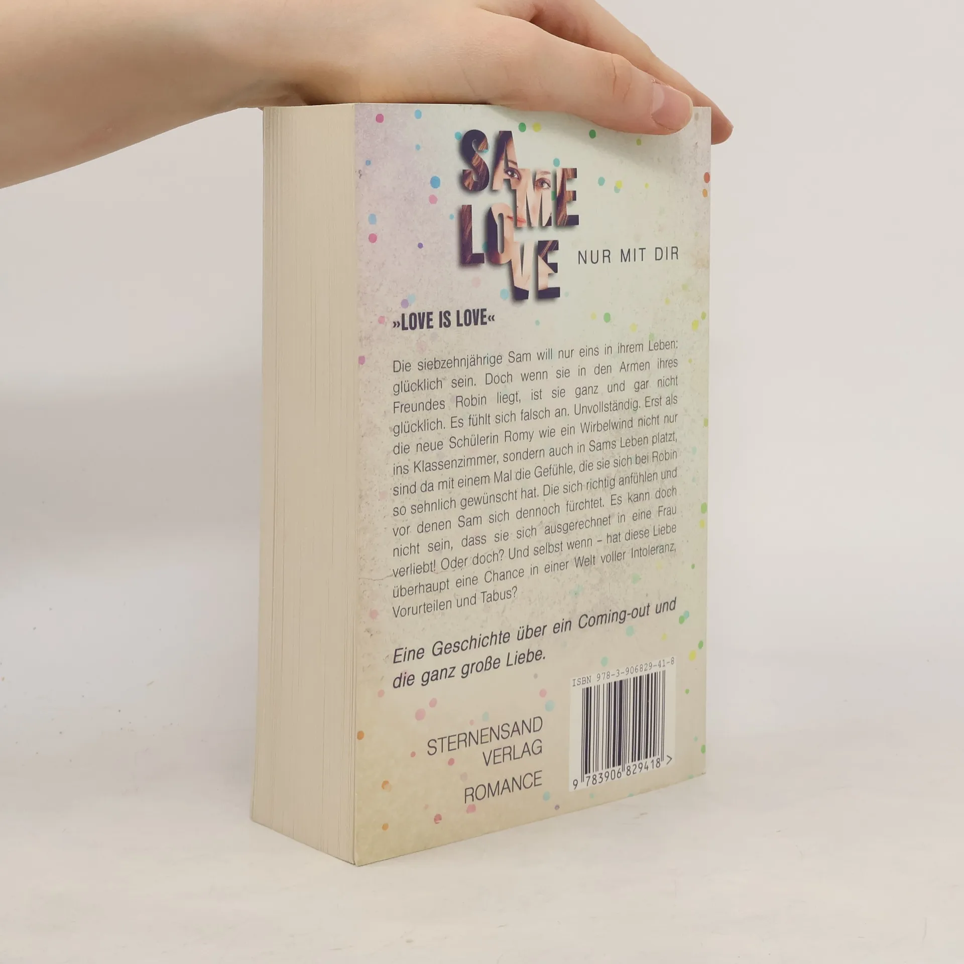 »LOVE IS LOVE« Die siebzehnjährige Sam will nur eins in ihrem Leben: glücklich sein. Doch wenn sie in den Armen ihres Freundes Robin liegt, ist sie ganz und gar nicht glücklich. Es fühlt sich falsch an. Unvollständig. Erst als die neue Schülerin Romy wie ein Wirbelwind nicht nur ins Klassenzimmer, sondern auch in Sams Leben platzt, sind da mit einem Mal die Gefühle, die sie sich bei Robin so sehnlich gewünscht hat. Die sich richtig anfühlen und vor denen Sam sich dennoch fürchtet. Es kann doch nicht sein, dass sie sich ausgerechnet in eine Frau verliebt! Oder doch? Und selbst wenn – hat diese Liebe überhaupt eine Chance in einer Welt voller Intoleranz, Vorurteilen und Tabus? Eine Geschichte über ein Coming-out und die ganz große Liebe.