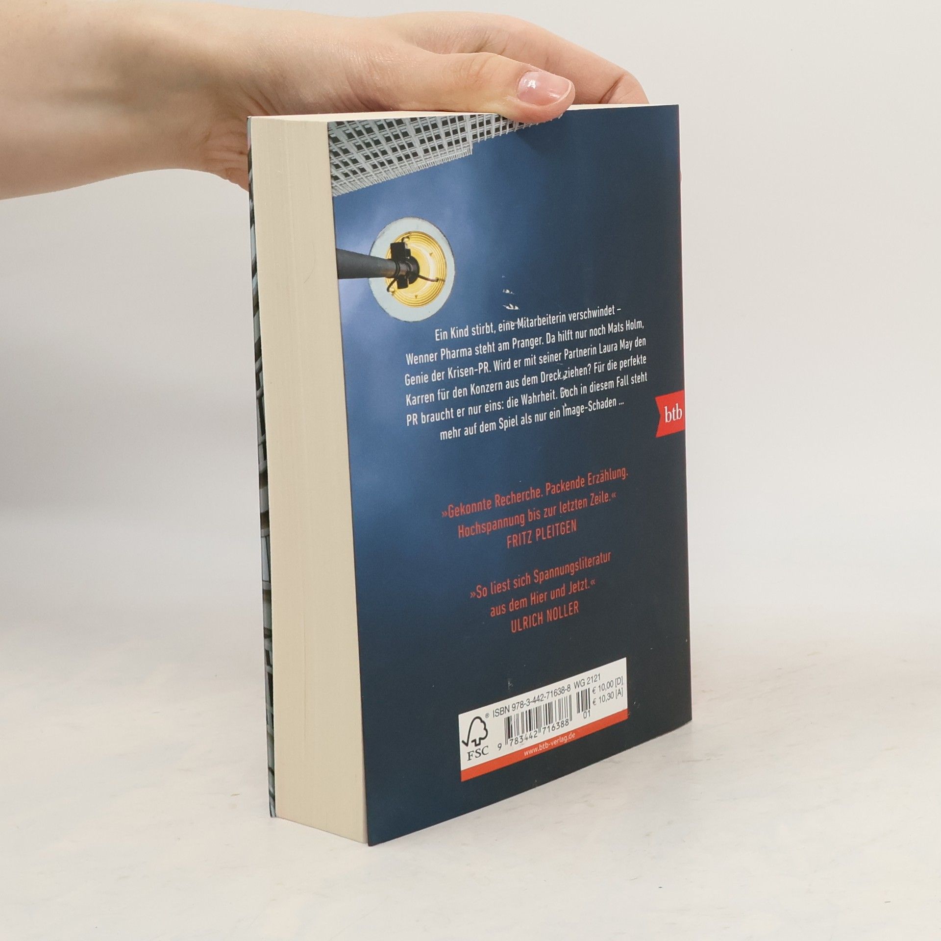 Der in Berlin lebende Mats Holm ist ein Genie der Krisen-PR. Gemeinsam mit seiner Partnerin Laura May boxt er Minister aus dem Kreuzfeuer der Medien, rettet Konzernen am Pranger den Aktienkurs oder bringt Promis im schwersten Shitstorm aus der Schusslinie. Für die perfekte PR braucht Holm nur eins: die Wahrheit. Doch die wollen die Auftraggeber nie verraten – und das aus gutem Grund. Nun wird die Agentur von einem Giganten der Pharmaindustrie zu Hilfe gerufen. Mehrere Kinder sind nach Einnahme eines Medikaments des Unternehmens schwer erkrankt, ein Mädchen stirbt. Eine Pharmakritikerin wirft dem Konzern vor, unsaubere klinische Studien in Indien durchgeführt zu haben. Als ihr Informant tot aufgefunden wird und eine Mitarbeiterin des Konzerns spurlos verschwindet, spitzt sich die Situation zu. Holm gerät in ein Ränkespiel ungeahnten Ausmaßes.