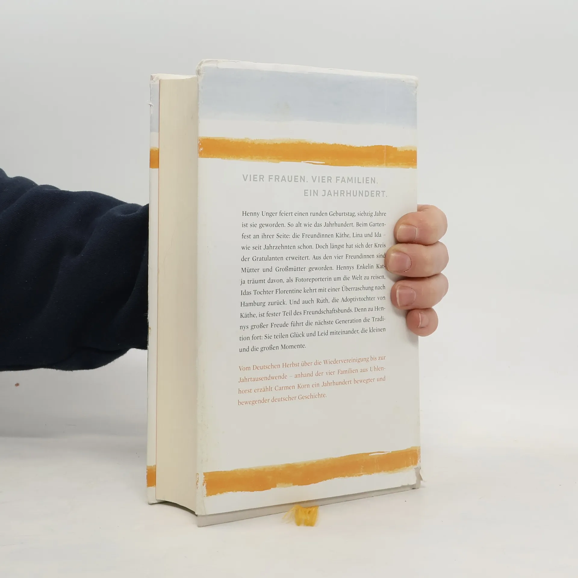 Vier Frauen. Vier Familien. Ein Jahrhundert.Henny Unger feiert einen runden Geburtstag, siebzig Jahre ist sie geworden. So alt wie das Jahrhundert. Beim Gartenfest an ihrer Seite: die Freundinnen Käthe, Lina und Ida – wie seit Jahrzehnten schon. Doch längst hat sich der Kreis der Gratulanten erweitert. Aus den vier Freundinnen sind Mütter und Großmütter geworden. Hennys Enkelin Katja träumt davon, als Fotoreporterin um die Welt zu reisen, Idas Tochter Florentine kehrt mit einer Überraschung nach Hamburg zurück. Und auch Ruth, die Adoptivtochter von Käthe, ist fester Teil des Freundschaftsbunds. Denn zu Hennys großer Freude führt die nächste Generation die Tradition fort: Sie teilen Glück und Leid miteinander, die kleinen und die großen Momente. Vom Deutschen Herbst über die Wiedervereinigung bis zur Jahrtausendwende – anhand der vier Familien aus Uhlenhorst erzählt Spiegel-Bestsellerautorin Carmen Korn ein Jahrhundert bewegter und bewegender deutscher Geschichte. Mit „Zeitenwende“ findet die Jahrhundert-Trilogie ihren Abschluss.