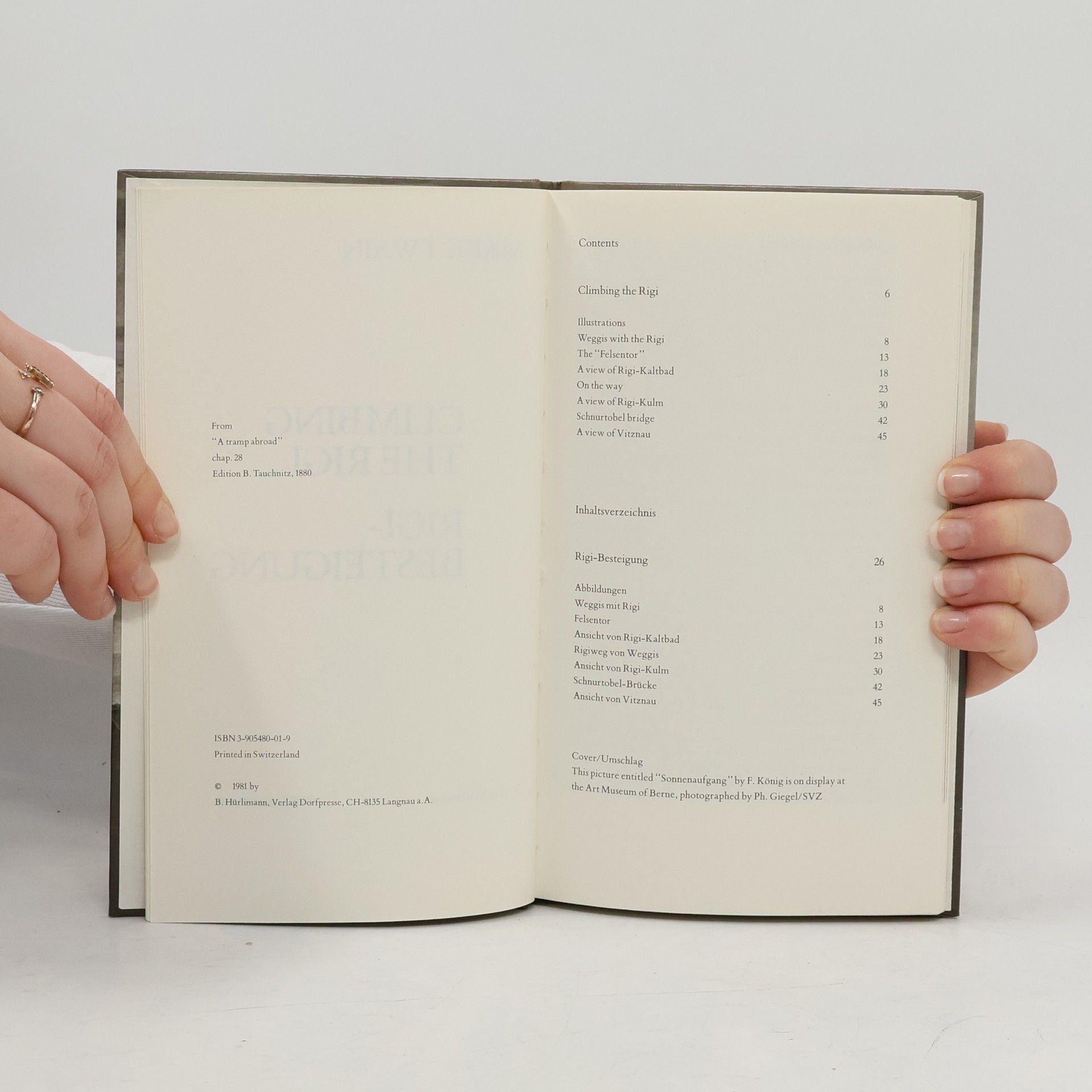 1878 bricht Markt Twain zu seiner zweiten Europareise auf, die ihn durch Deutschland, Österreich und die Schweiz führt. Seine Erlebnisse und Erfahrungen verarbeitete er im Band „A Tramp Abroad“ (deutsch: „Bummel durch Europa“, 1980), der neben der humorvollen Abhandlung über die Eigenheiten und Schwierigkeiten der deutschen Sprache „The Awful German Language“ auch „Climbing the Rigi“ enthält. Mark Twain logierte damals mit seiner Familie in Weggis. Den Seeplatz mit atemberaubender Aussicht bezeichnete er als „den schönsten Flecken Erde, auf dem ich je geruht habe“. In „Climbing the Rigi“ beschreibt Twain die dreitägige Rigibesteigung zusammen mit einem Freund - sie wollen den legendären Sonnenaufgang erleben. Auf seine ganz besondere Art erzählt er witzig und detailreich und vermag damit noch heute zu begeistern.